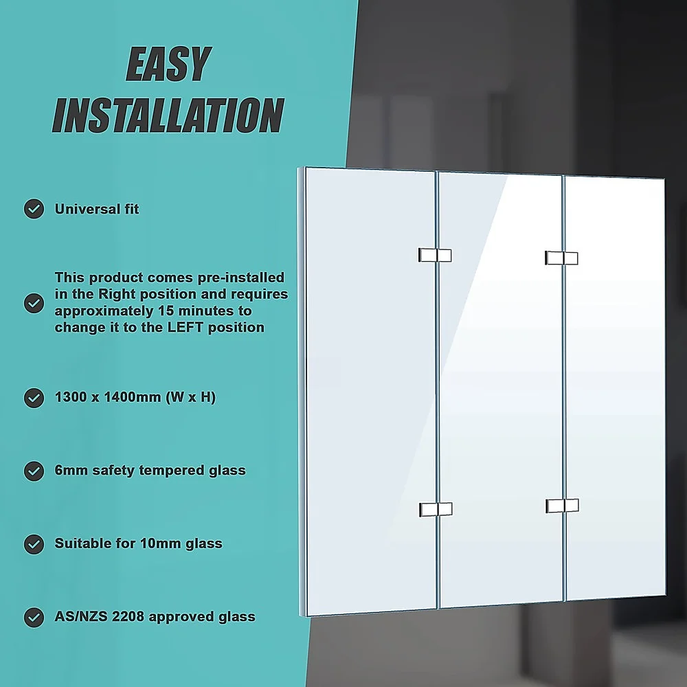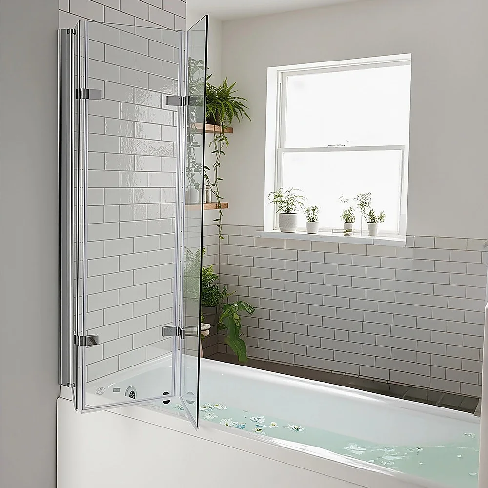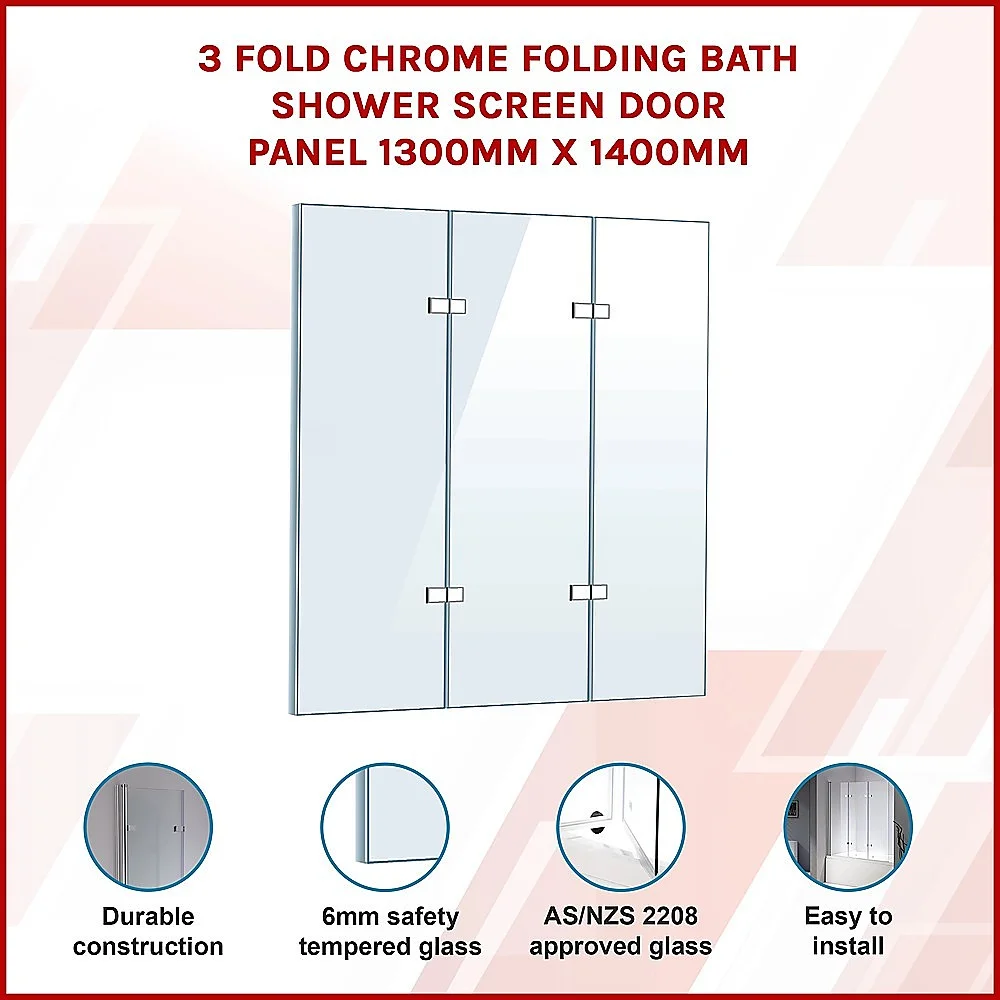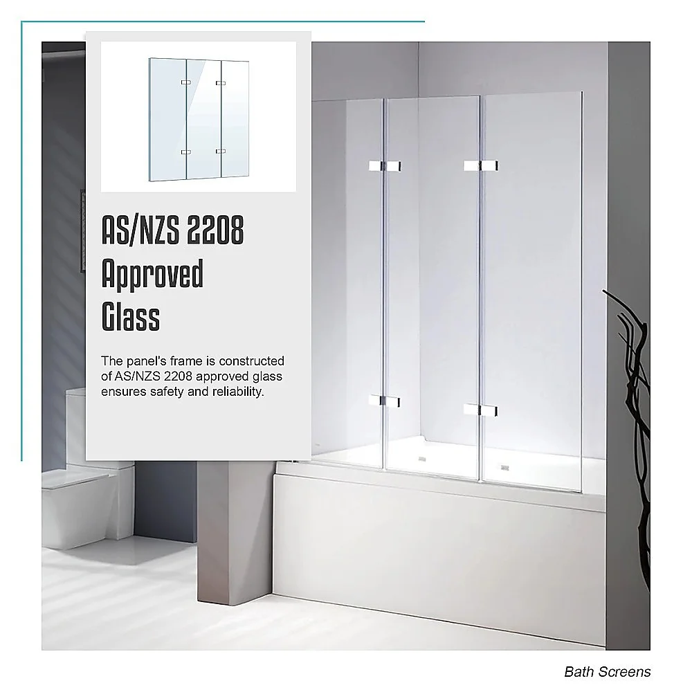 Our three-fold chrome bath shower door panel will brighten your existing bathroom or be a welcome improvement as a part of your bathroom renovation. This folding shower screen is a plus for both the homeowner and the home developer. The panel's frame is constructed of AS/NZS 2208 approved glass ensures safety and reliability.