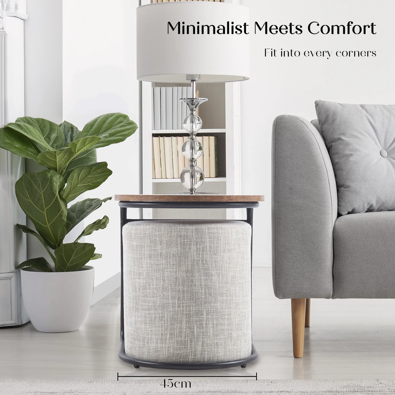 Presenting the Coffee Table and Ottomans Set: a chic 3-piece ensemble comprising 1 coffee table and 2 stools. This versatile 3-in-1 collection is crafted to serve as the stylish focal point of your living space, seamlessly blending functionality with contemporary, rustic, and industrial design.