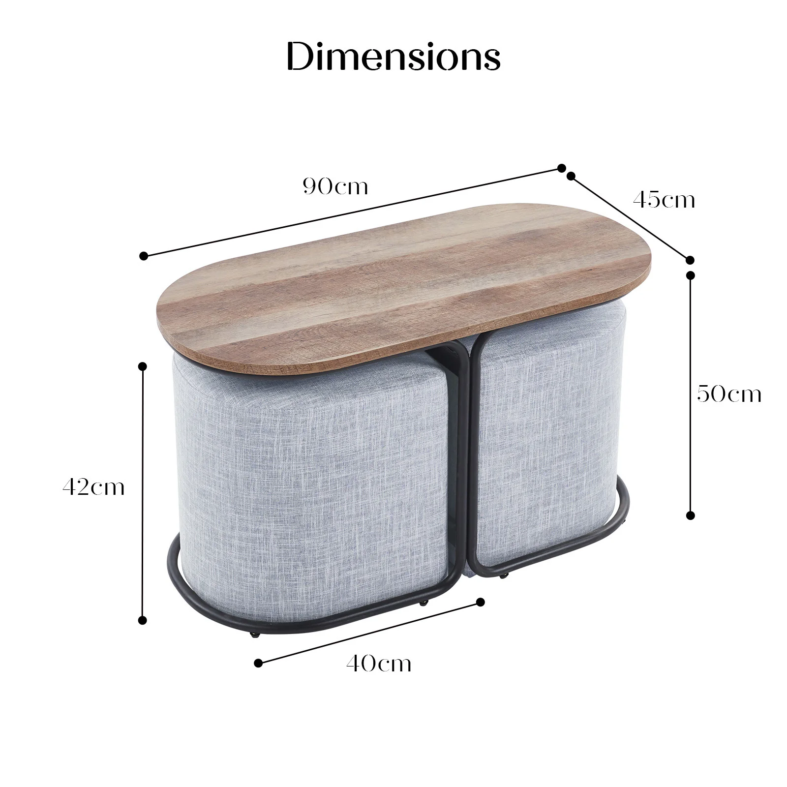 Table Dimensions: 90 x 45 x 50cm (L x W x H)