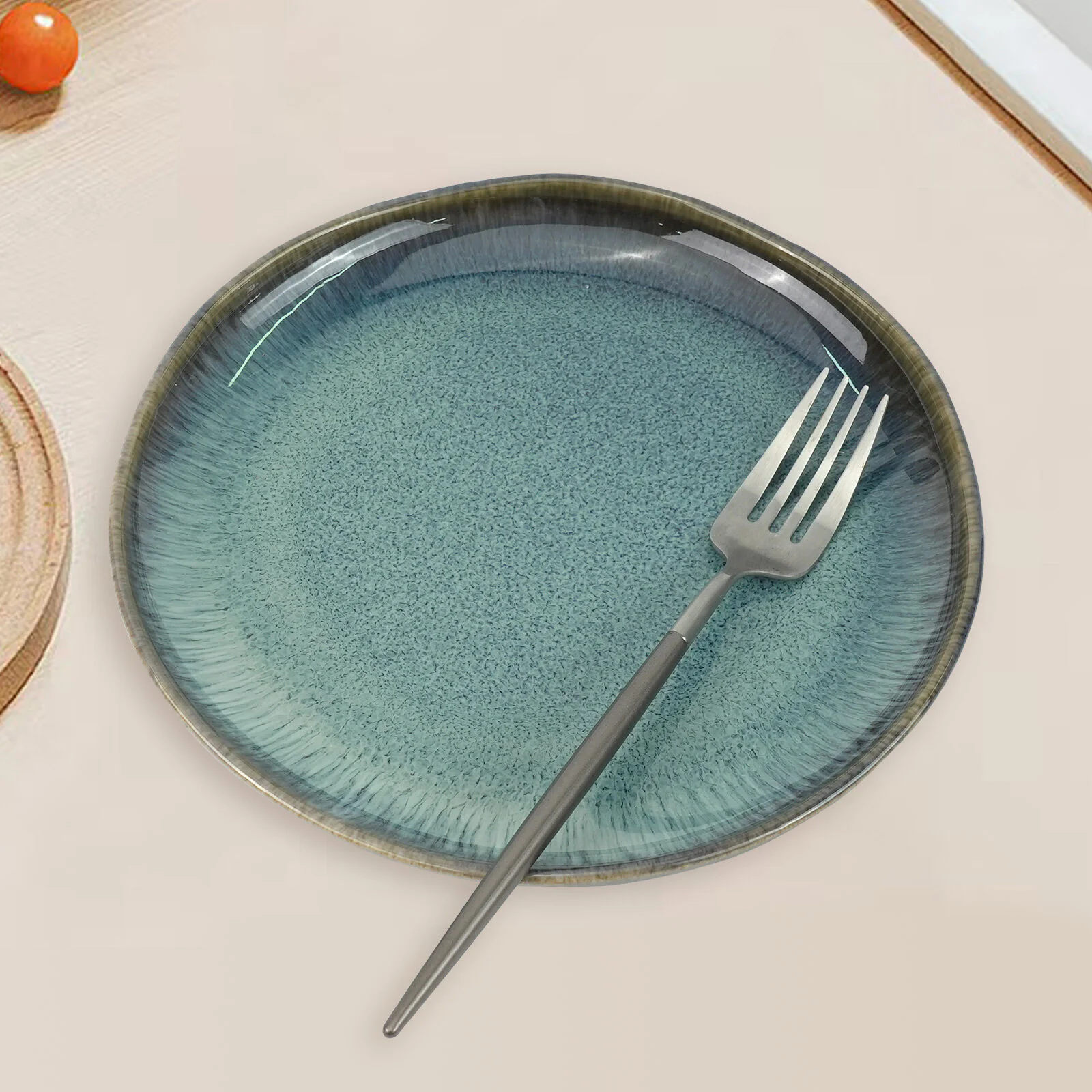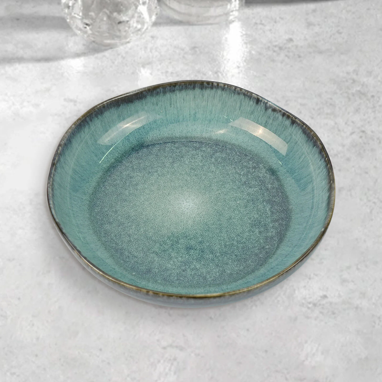 3 Pieces Reactive Glazed Ceramic Organic Fine Dinner Set with Plate and Bowl Earthy Aqua