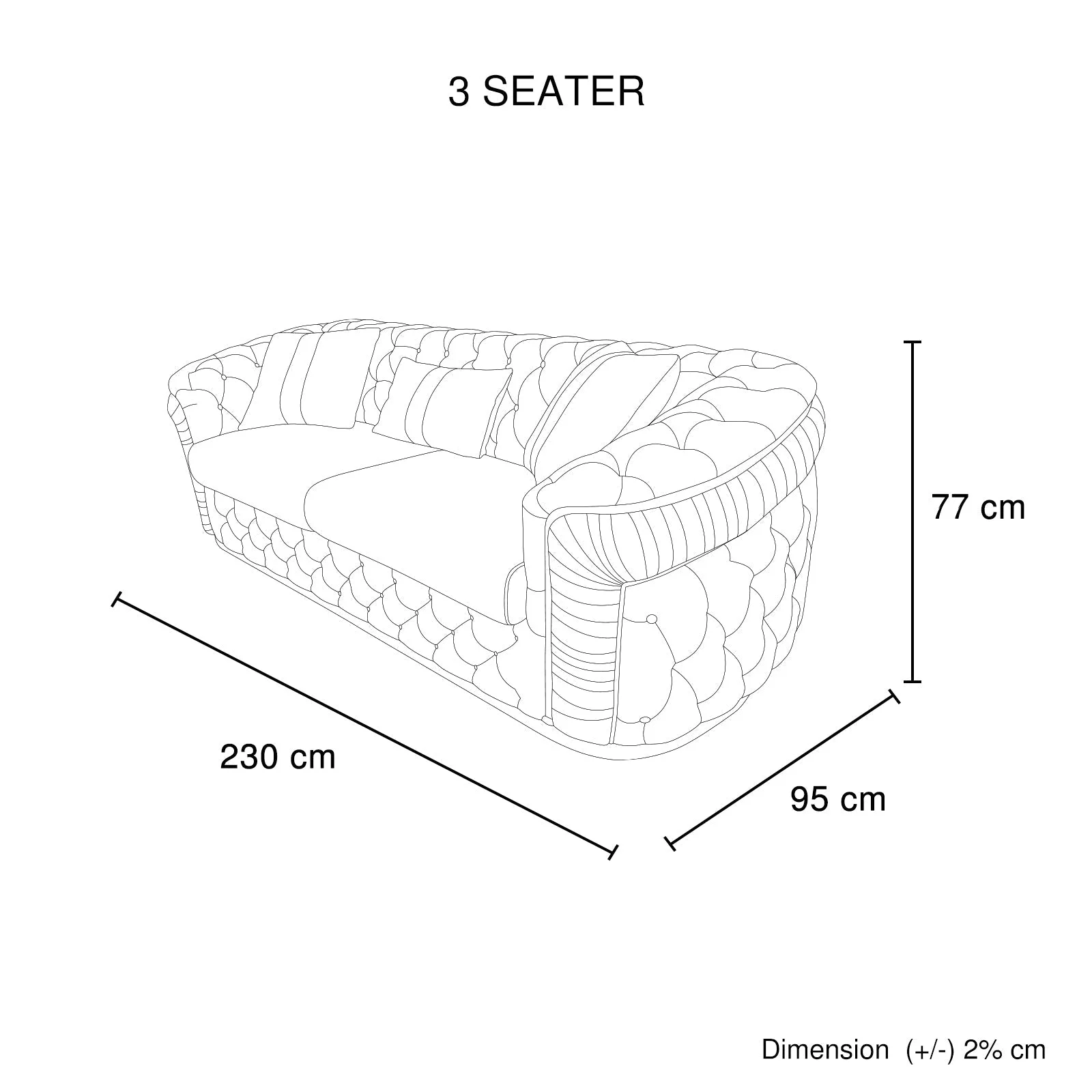 Product Dimension:L-230x W-95 x H-77cm