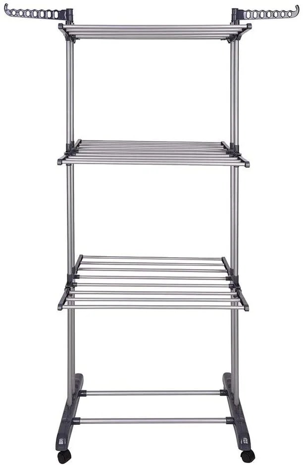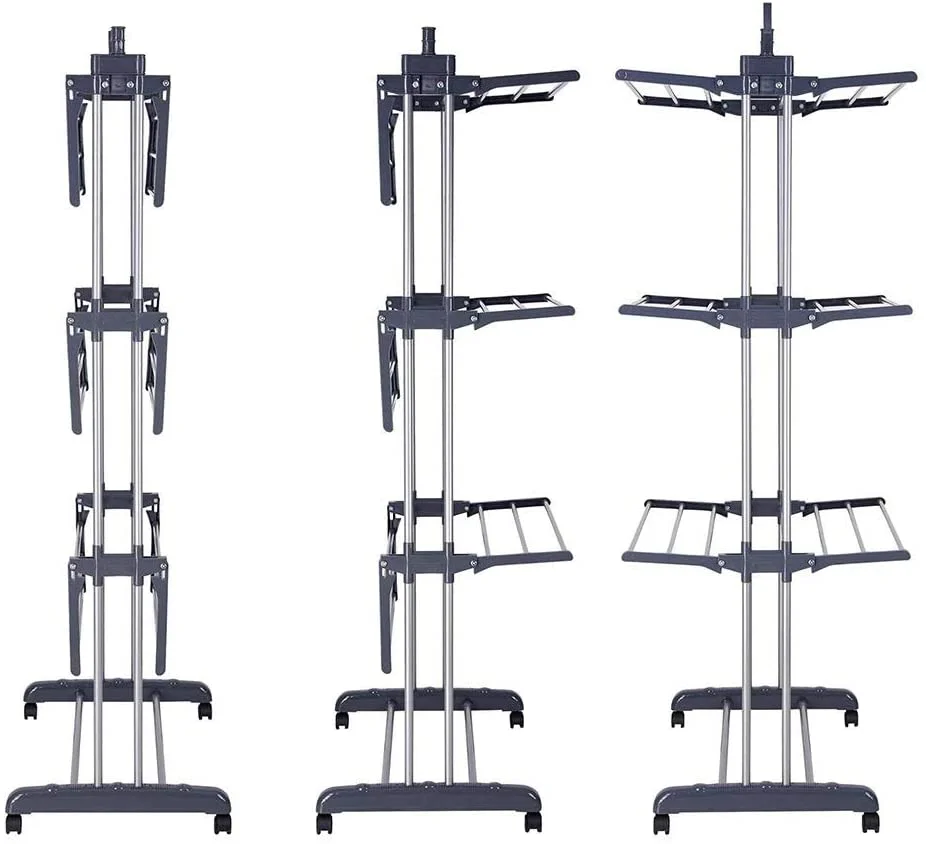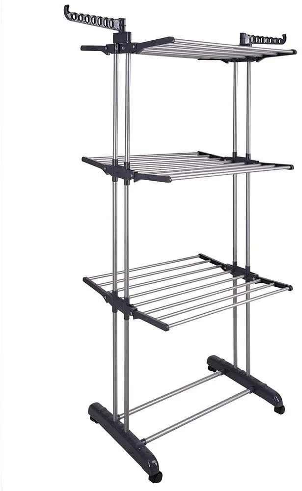 3 Tier Foldable Clothes Drying Rack for Laundry Dryer with Hanger Stand Rail Indoor
