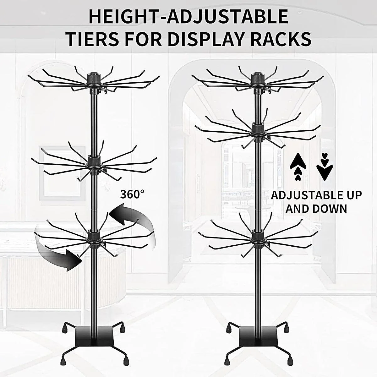 This versatile 3-tier rotating display stand is the perfect solution for showcasing accessories, jewelry, socks, keychains, and more. Crafted from sturdy metal, it provides durability and stability while offering a sleek, modern look. The 360-degree rotating design allows easy access to all displayed items, while the adjustable height ensures flexibility for various item sizes. Ideal for use in retail shops, exhibitions, or at home, this stand helps maximise storage space while keeping your items organised.