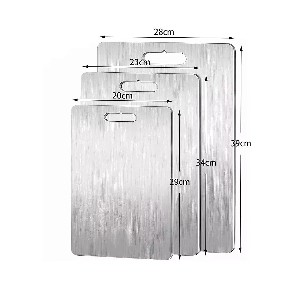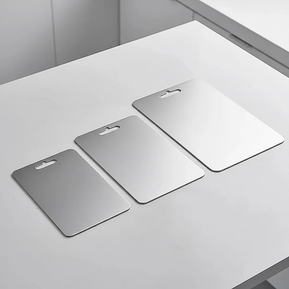 Built for durability and hygiene, this 3-piece 304 stainless steel chopping board set features a sleek, non-porous surface that won't absorb odours or stainsperfect for clean, precise food prep in any kitchen.