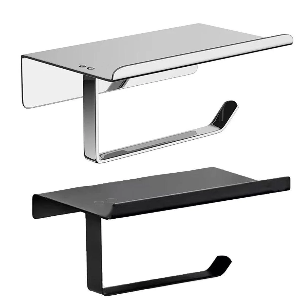 Upgrade your bathroom with this stylish and functional toilet paper holder, crafted from durable 304 stainless steel for long-lasting use. Its non-perforated design allows easy installation without drilling, perfect for renters or those wanting a clean setup. The holder features a built-in phone rack, providing extra storage space for small essentials like phones, keys, or even decor items. With a waterproof and moisture-proof surface, this holder is built to withstand humid environments, ensuring it maintains its sleek appearance over time. The smooth, rounded corners add safety, making it suitable for all bathrooms.
