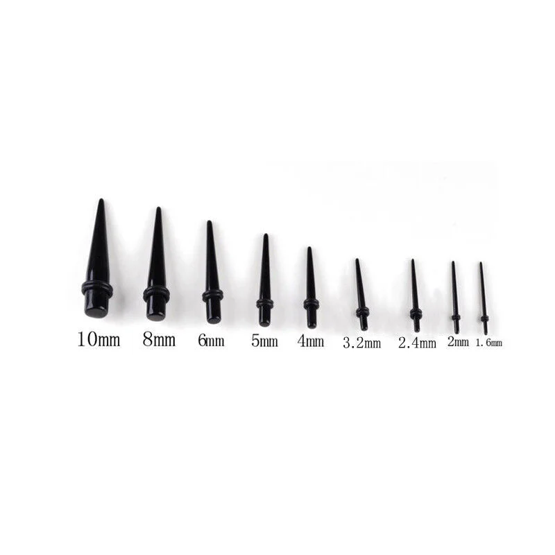 - Size: 14G (1.6mm), 12G (2mm), 10G (2.4mm), 8G (3.2mm), 6G (4mm), 4G (5mm), 2G (6mm), 0G (8mm), 00G (10mm)