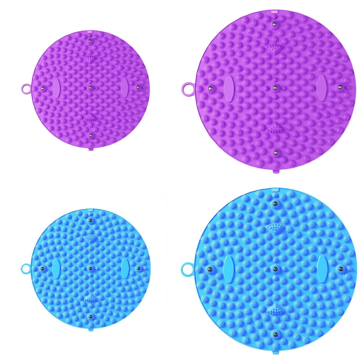Design: Circular mat with raised triangular textures and embedded stimulation points