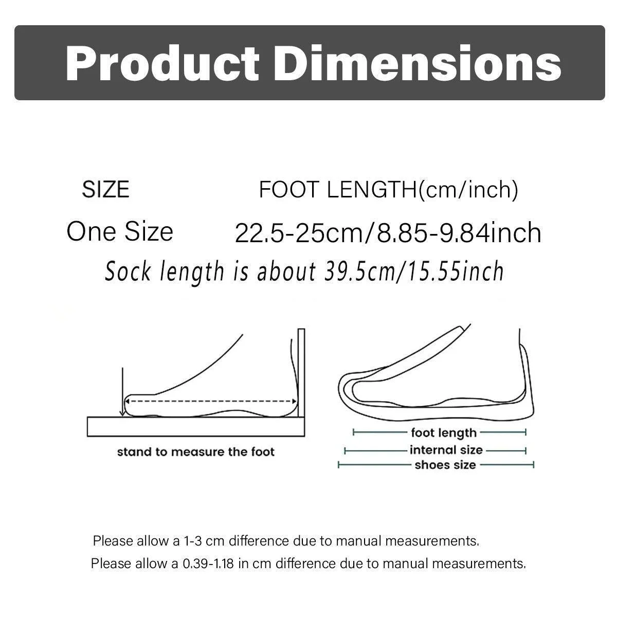 Size: One size fits most (22.5-25cm/8.85-9.84 inches)