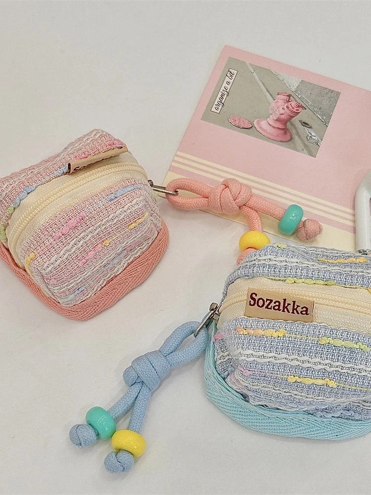 Protect your small essentials in style with this adorable miniature backpack pouch. Perfectly sized for earphone cases, coins, keys, or other tiny treasures, this pouch is both charming and functional. It is crafted with a beautifully textured woven polyester exterior and features a soft poplin lining to keep your items safe. The secure zipper closure ensures everything stays in place, while the attached decorative knotted cord lanyard with bead details makes it easy to carry or clip onto a larger bag.