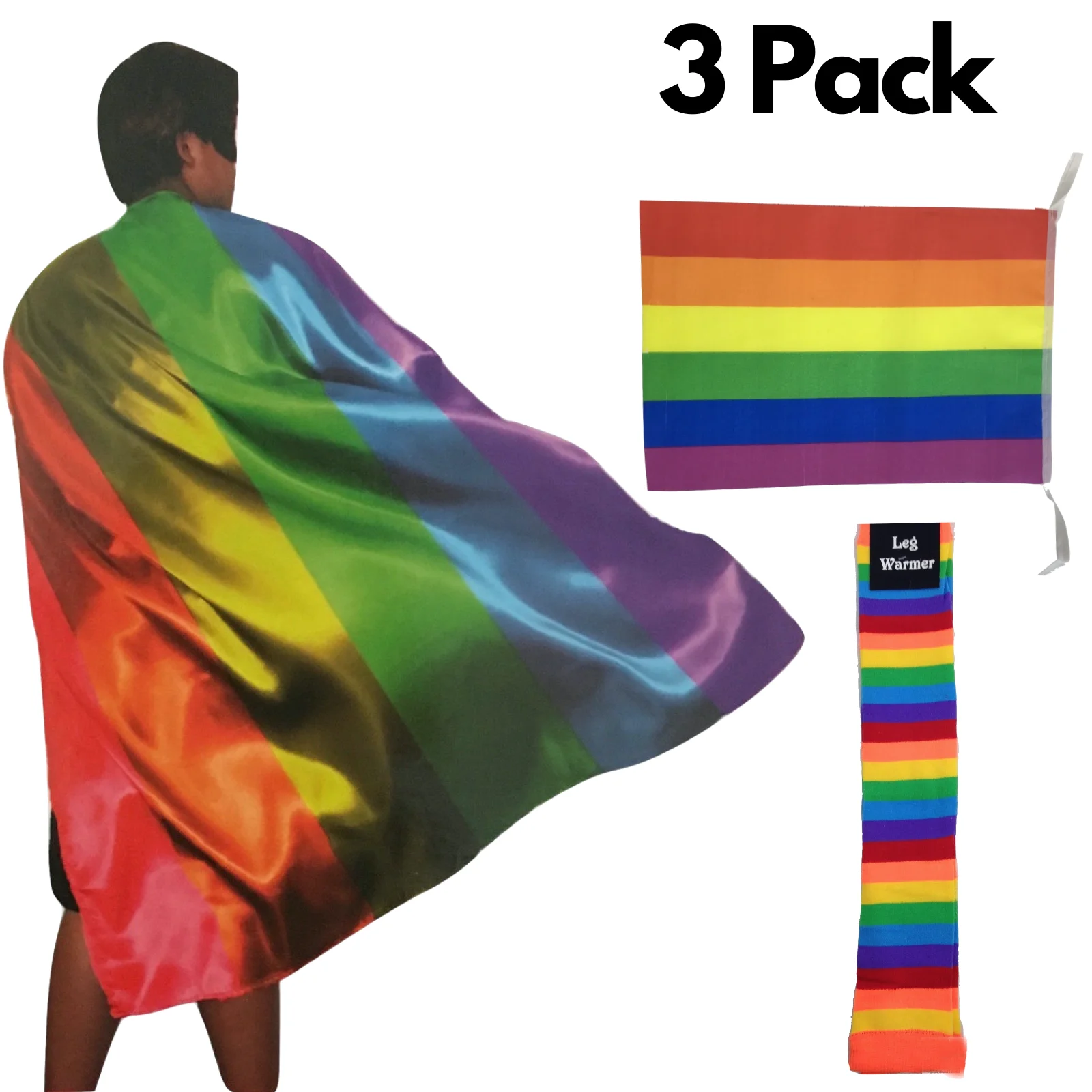 3x Set Rainbow Leg Warmers + Deluxe Cape + Bunting Flag Lesbian Gay Costume