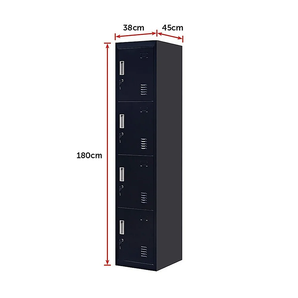 Four vertically-stacked lockers provide a good amount of room for small personal belongings, purses, textbooks, office supplies, and much more. This comes comes with standard locks (with 2 keys each) to ensure safety of your items.
