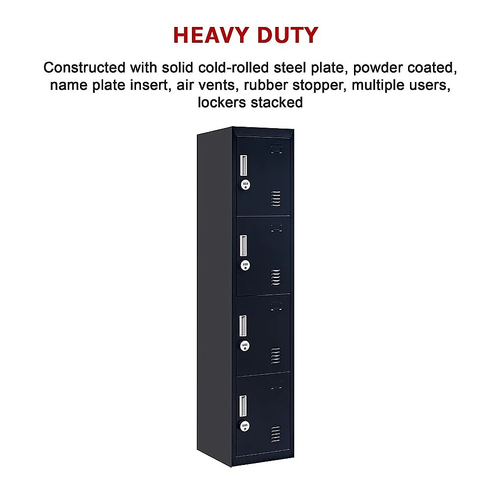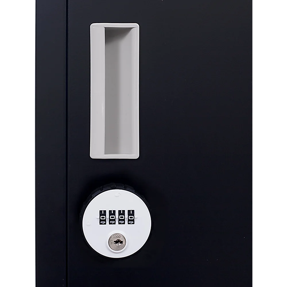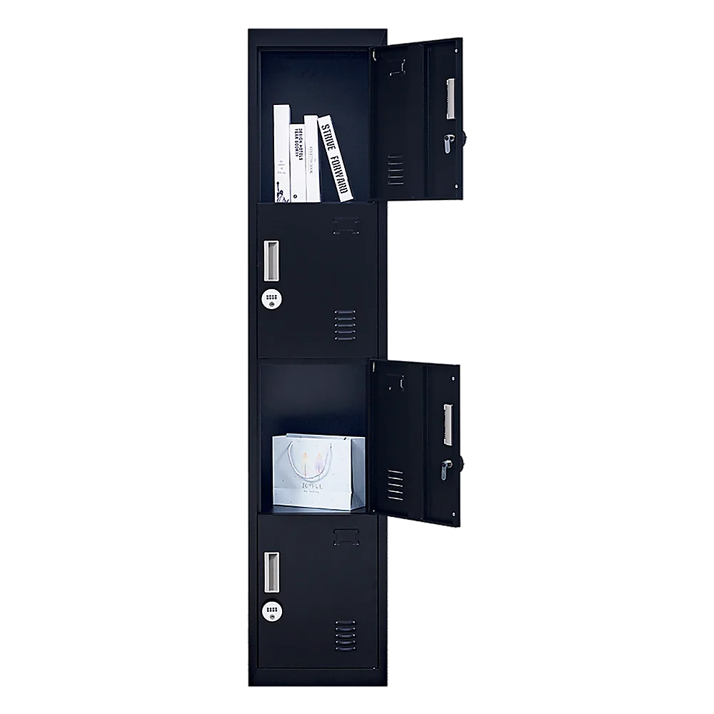 Four vertically-stacked lockers provide a good amount of room for small personal belongings, purses, textbooks, office supplies, and much more. This comes comes with 4-digit combination lock to ensure safety of your items.