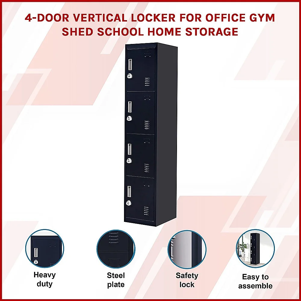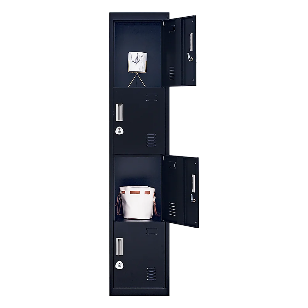 Four vertically-stacked lockers provide a good amount of room for small personal belongings, purses, textbooks, office supplies, and much more. This comes comes with 3-digit combination lock to ensure safety of your items.