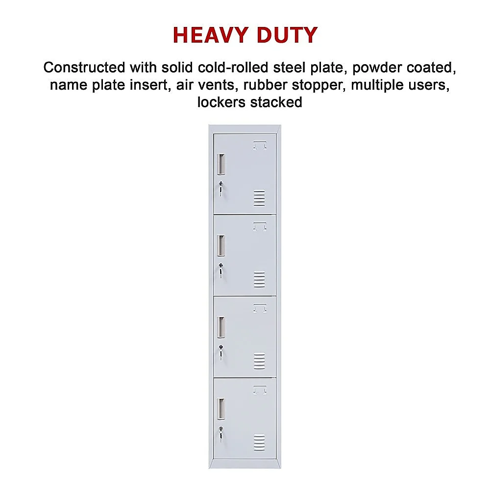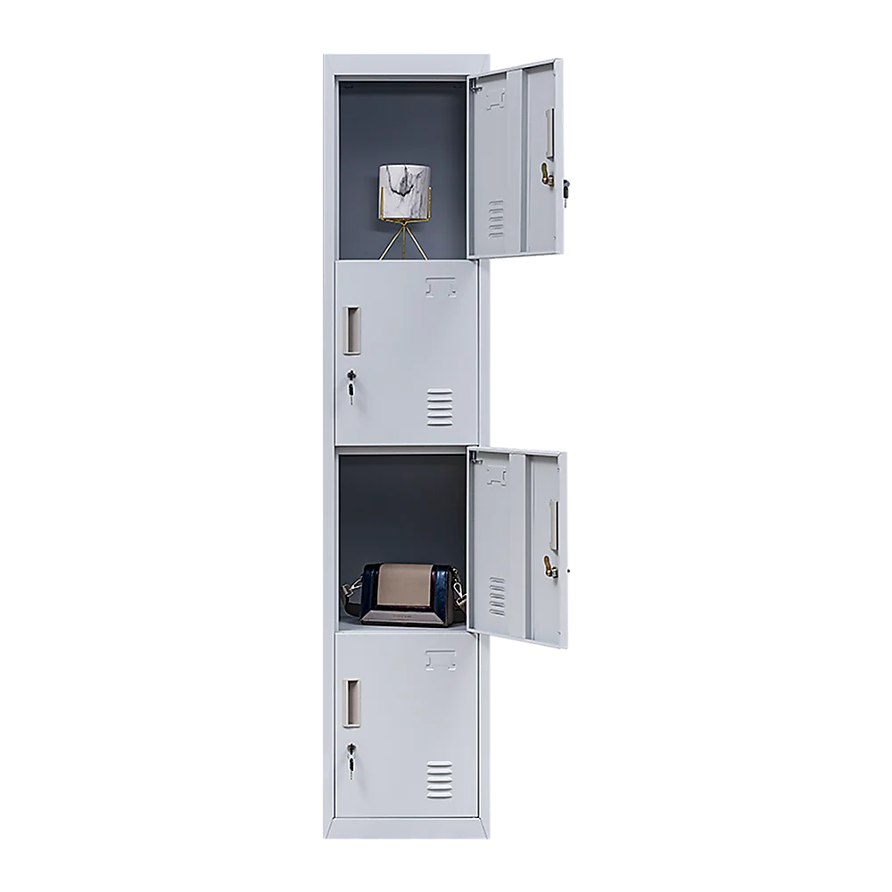 Four vertically-stacked lockers provide a good amount of room for small personal belongings, purses, textbooks, office supplies, and much more. This comes comes with standard locks (with 2 keys each) to ensure safety of your items.