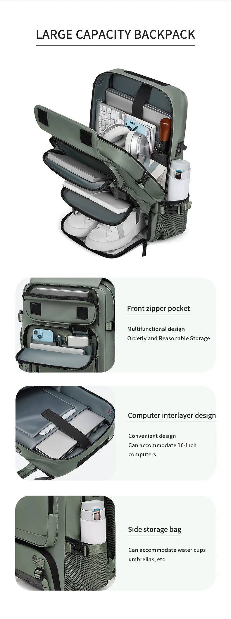 Embark on your next journey with the ultimate in versatility and organization. This 4-in-1 convertible bag seamlessly transforms from a comfortable backpack to a professional briefcase, shoulder bag, or crossbody bag to meet all your travel and commuting needs. It features a large capacity, multi-compartment design that can accommodate a 16-inch laptop, clothes, shoes in a dedicated compartment, and all your accessories. Crafted from durable, water-resistant Oxford cloth, this bag is built for short trips, business travel, and outdoor adventures. Stay powered up on the go with the integrated USB charging port, and travel with peace of mind thanks to the anti-theft spring buckle.