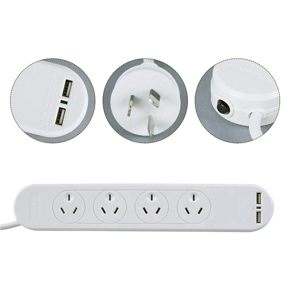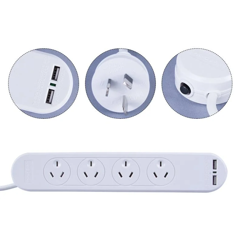 4 Outlet Powerboard with Surge Protection ensures your devices remain protected when plugged in. 2 USB charge ports to keep your small devices powered. Suitable for indoor use only.