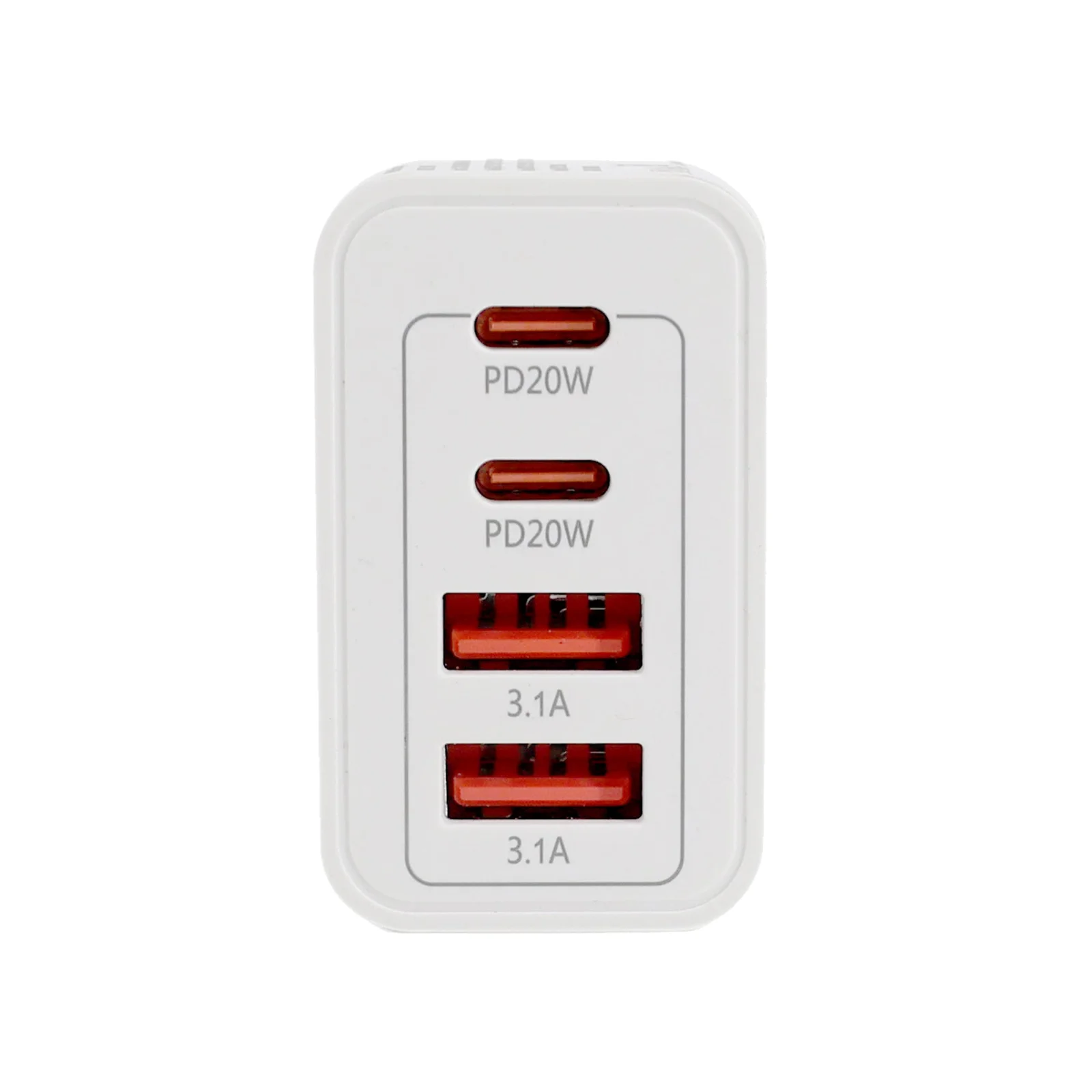 Power up to four devices simultaneously with our 4-Port Wall Charger, featuring 2 USB-A ports and 2 USB-C ports. Designed for efficiency and convenience, this compact charger delivers a total output of 40W, making it perfect for smartphones, tablets, and other USB-powered devices.