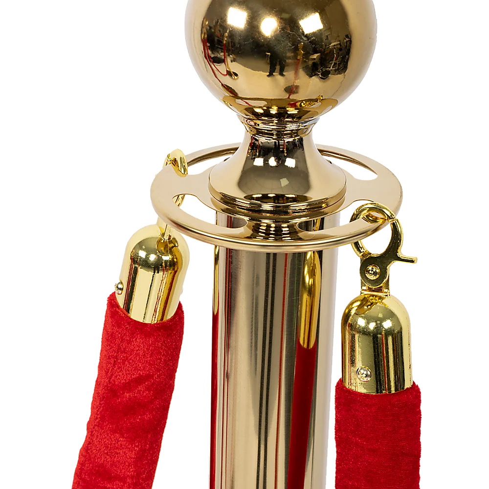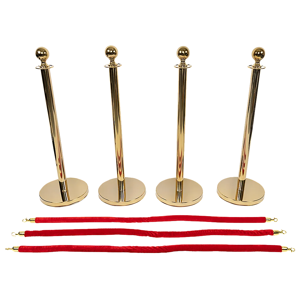 Constructed with durability in mind, the gold crowd control stanchions are meticulously crafted from 201 stainless steel posts and zinc alloy balls, ensuring resilience and resistance to high temperatures.