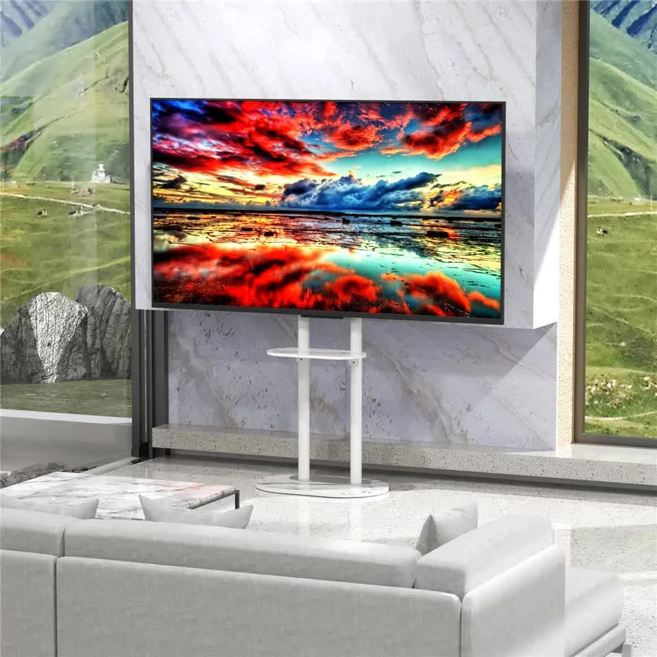 This freestanding TV floor stand is designed for 4075 LCD/LED TVs and supports up to 40 kg (88 lbs). Built with heavy-duty cold-rolled steel and a 12 mm sintered stone shelf, it delivers exceptional strength, stability, and a refined modern lookwithout drilling into your walls.