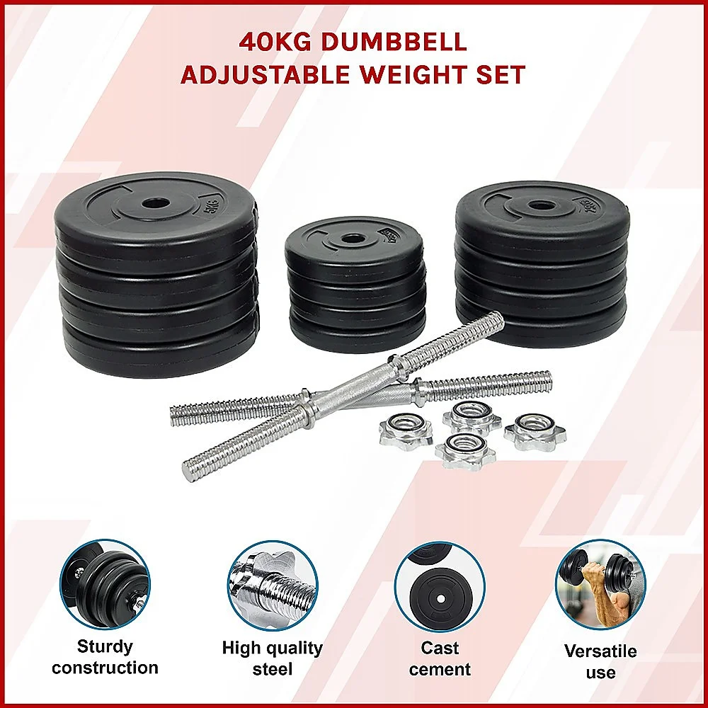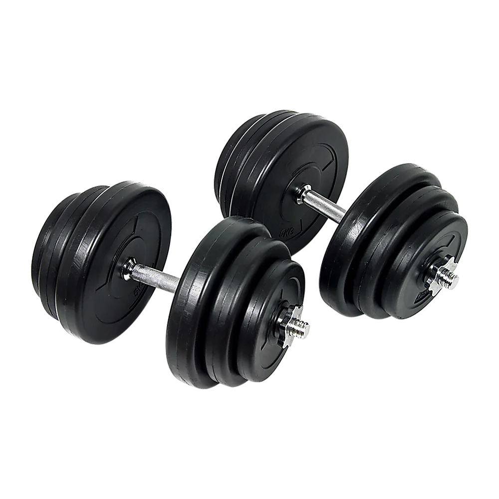 This complete 40 kg dumbbell set from Randy Travis Machinery is the perfect addition to your gym or home fitness room. Compact and sturdy, this set includes both dumbbell bars and plates. With a one-year warranty, you can't go wrong with this set. Made from high-quality steel with a non-slip handle, this set allows you to train with confidence without fear of losing your grip.