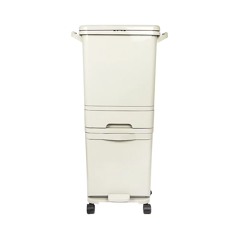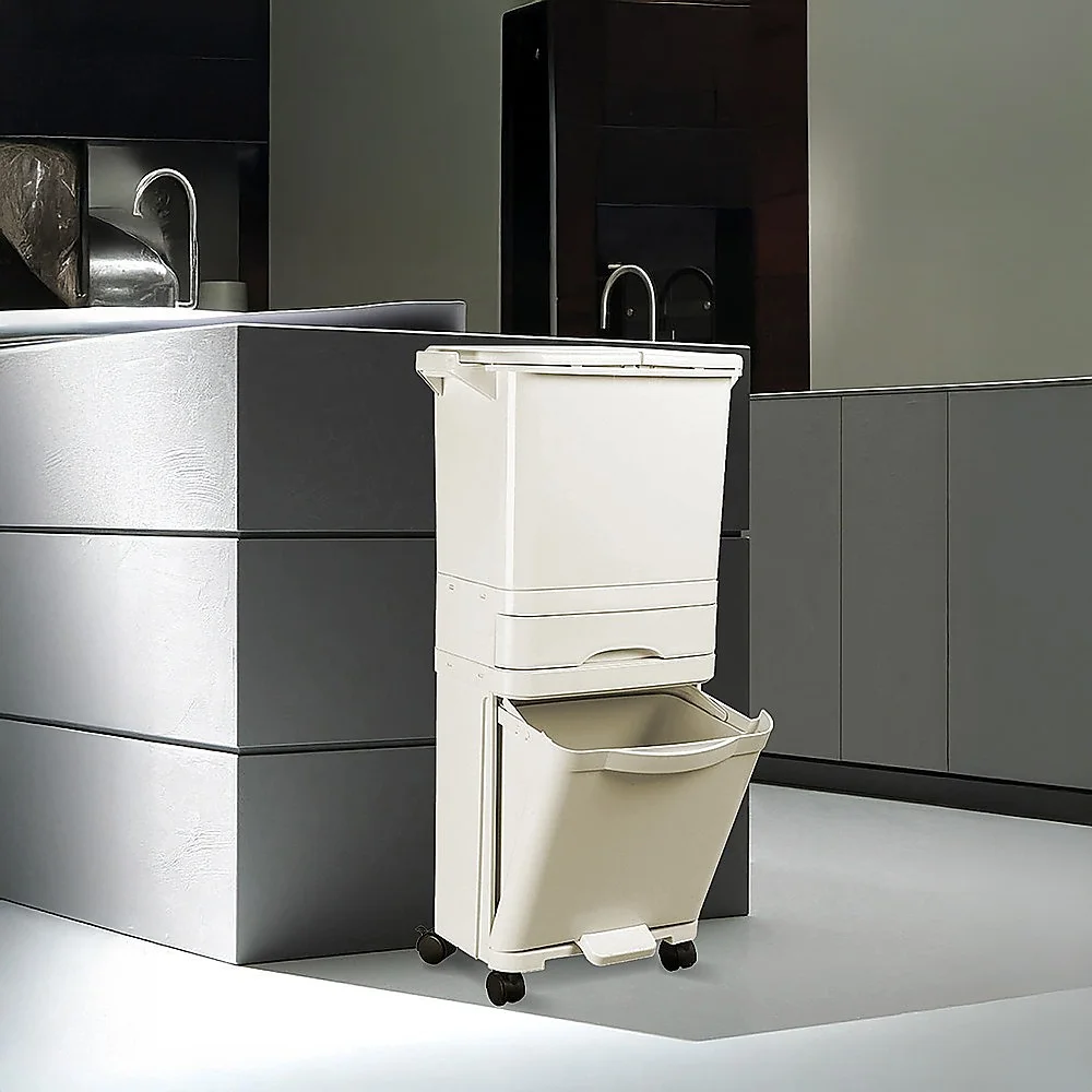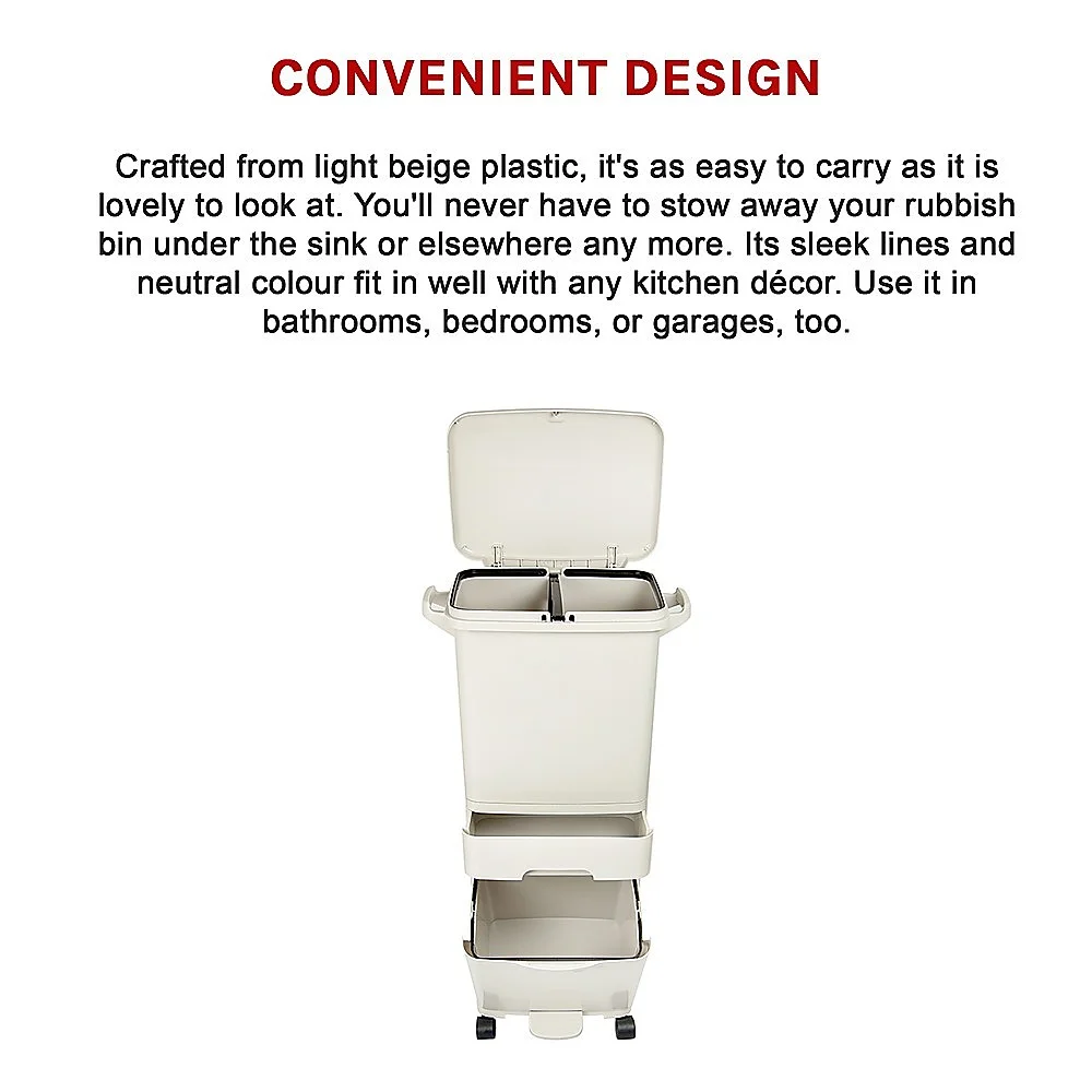 Crafted from light beige plastic, it's as easy to carry as it is lovely to look at. You'll never have to stow away your rubbish bin under the sink or elsewhere any more. Its sleek lines and neutral colour fit in well with any kitchen décor. Use it in bathrooms, bedrooms, or garages, too. Its versatility makes it an ideal fit for practically any space where you need to store your rubbish. A lid lock keeps odours from getting out and pests from getting in. It's truly a one-stop solution for all your disposables. Order yours today!