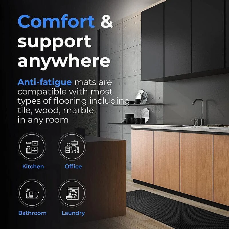 Versatile Sizes: Suitable for varied kitchen layouts, it can also serve as an ergonomic mat for standing desks.