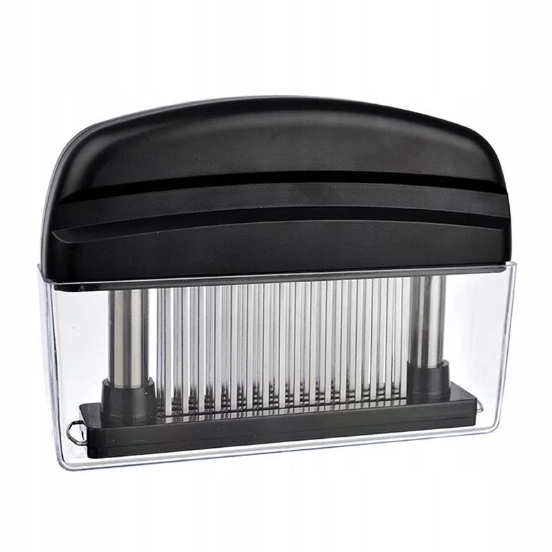 Unlock better flavour and tenderness in every bite with this 48-blade stainless steel meat tenderizer. Designed to penetrate tough meat fibres without flattening or tearing, this tenderizer helps reduce cooking time and allows marinades to soak in faster and more evenly. Whether you're preparing pork chops, beef steaks, chicken breasts, or lamb cutlets, this tool improves both taste and texture. With an ergonomic grip and spring-loaded blades that retract for safety, it's easy to use and clean—making it an essential for home kitchens and BBQ lovers alike.