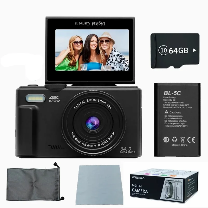 The 3-inch 180° flip screen makes self-recording a breeze, while built-in WiFi lets you transfer and share content on the go. It supports external microphones for upgraded sound and features both photo flash and video fill lighting for professional-level results. With autofocus, a user-friendly interface, and a generous 64GB card included, this camera is the all-in-one companion for travel, vlogging, events, or everyday storytelling.