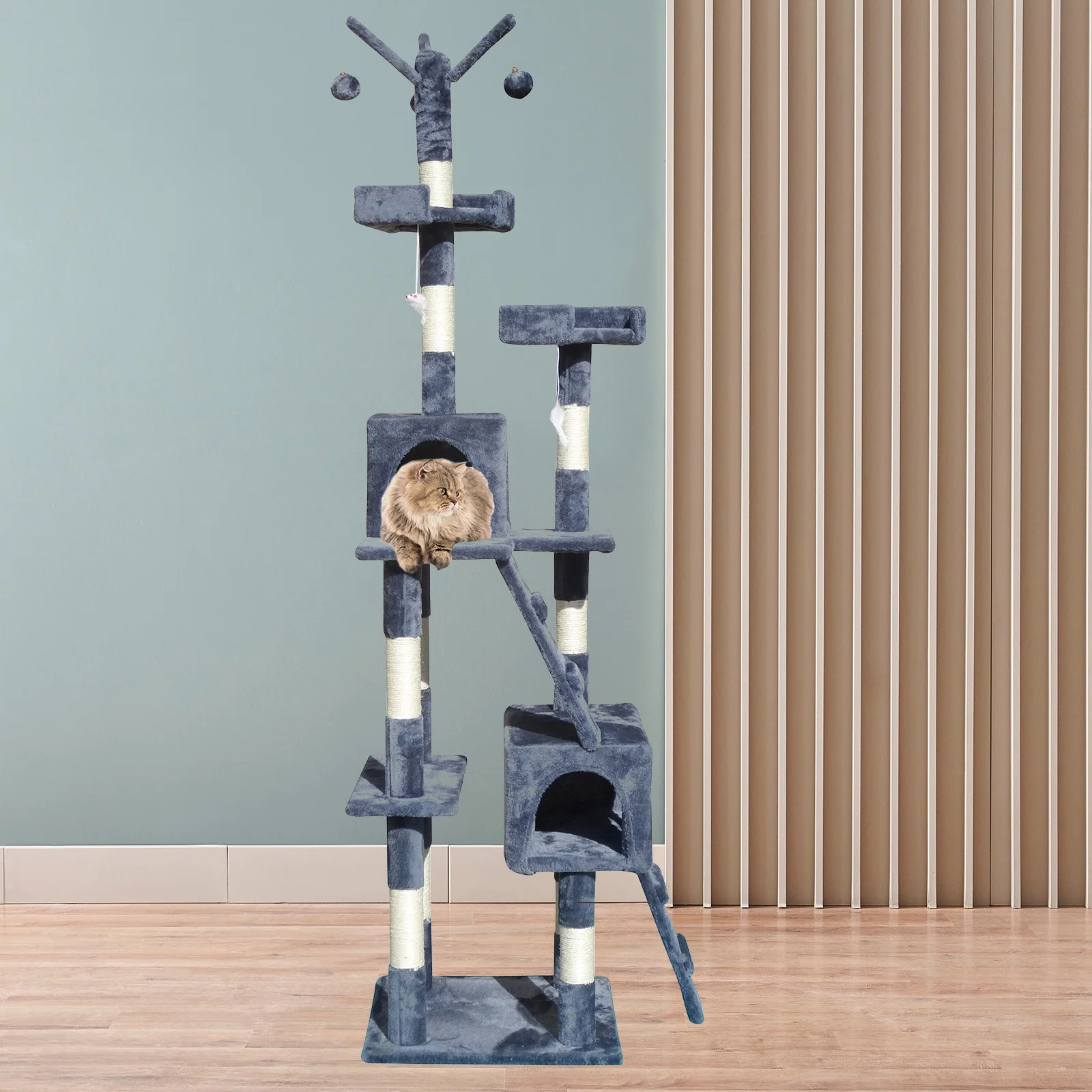 Curious cats will love to explore the multilevel and multi-zoned design that provides various napping positions, hiding spots, and a place to divert their scratching instincts.