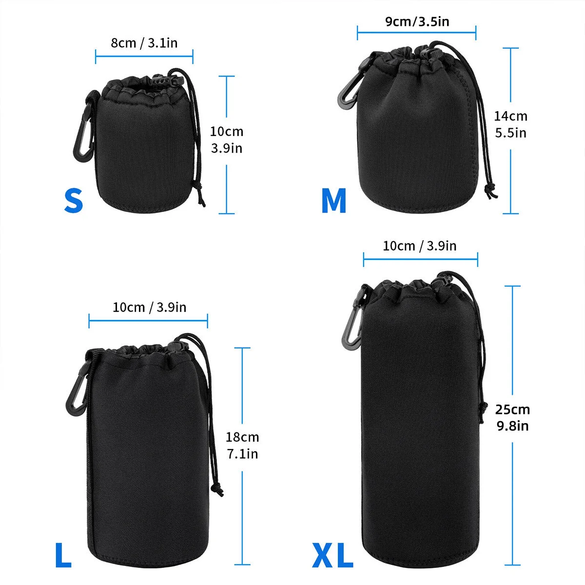 Size S: Approx. 8 × 10 cm / 3.1 × 3.9 in (fits lens up to 7 cm / 2.75 in long)