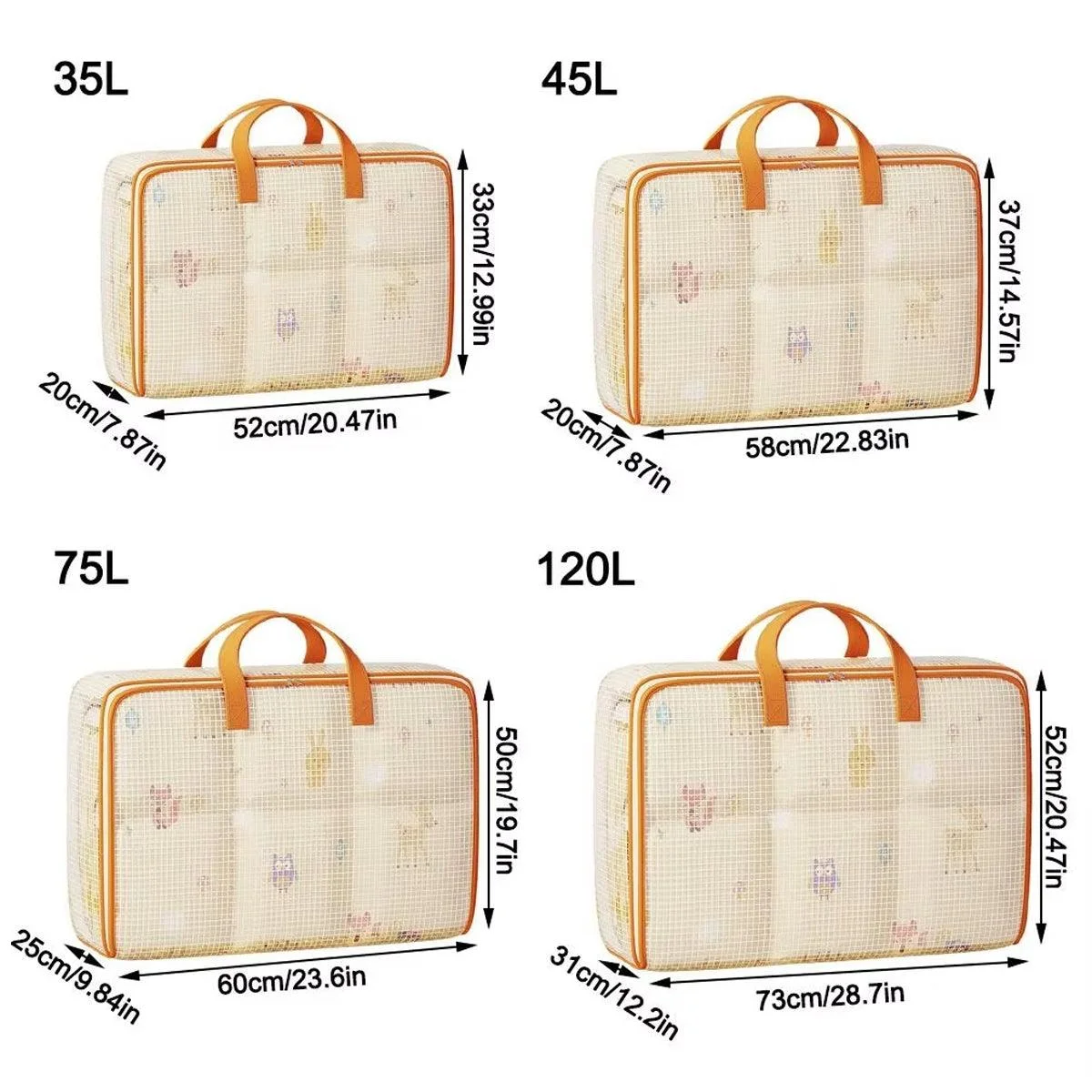 Organise and protect your household items efficiently with this set of four quilt storage bags, designed with updated dimensions for better capacity and utility. Crafted from durable transparent PVC with a grid design, these bags are perfect for storing clothes, quilts, and other household essentials. With moisture-proof and dustproof properties, reinforced handles, and smooth double zippers, these bags offer convenience and durability for home organisation, travel, and moving.