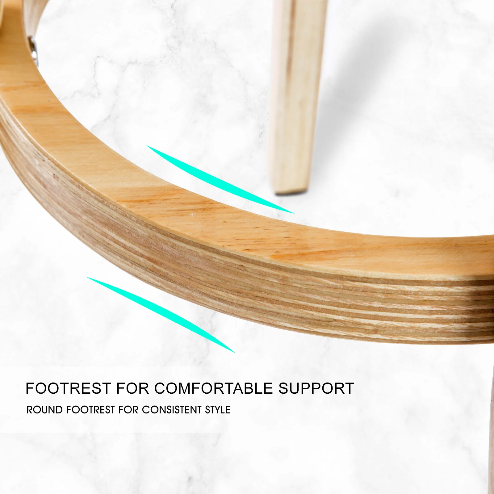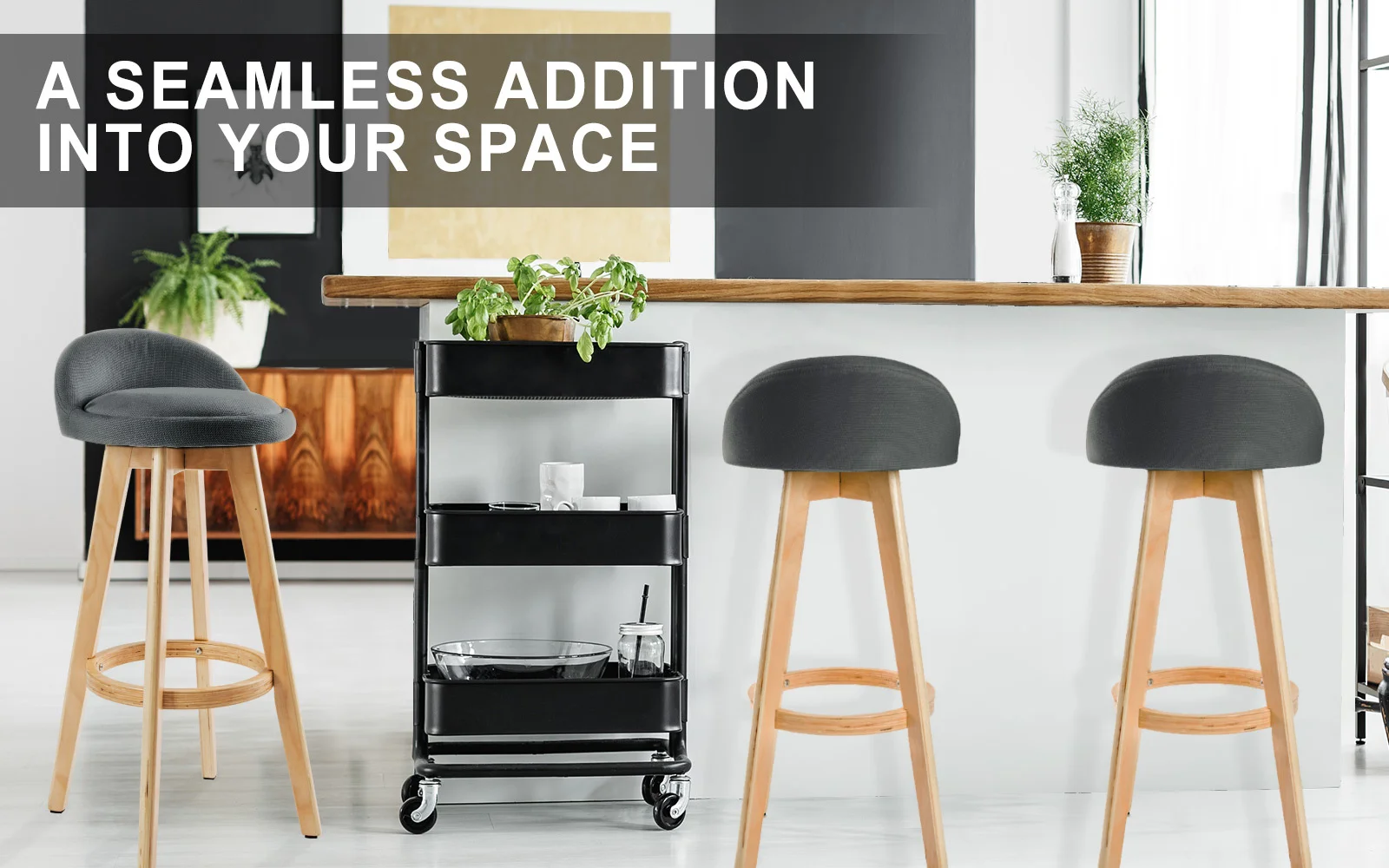 To ensure safety, the legs are tapered outwards to form a slight A-shape, so that the bar stool is well-balanced without occupying too much space. Additionally, the legs are made of solid plywood with a circular footrest to ensure extra sturdiness and support. This does not mean comfort is sacrificed as the seat itself is upholstered with fabric padding. Installed with a swivel mount plate, the seat will swivel 360 so that you can reach whatever you want, maximising accessibility. Stool legs are also equipped with anti-slip protectors to minimise scratches onto wooden and tile floors. To give you a peace of mind, the bar stool will only take you approximately 9 minutes to assemble.