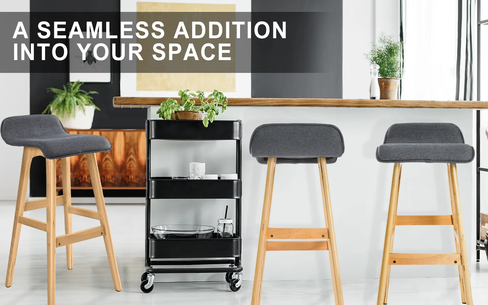 To ensure safety, the legs are tapered outwards to form a slight A-shape, so that the bar stool is well-balanced without occupying too much space. Additionally, the legs are made of solid plywood with a footrest to ensure extra sturdiness and support. This does not mean comfort is sacrificed as the seat itself is upholstered with fabric. Stool legs are also equipped with anti-slip protectors to minimise scratches onto wooden and tile floors. To give you a peace of mind, the bar stool will only take you approximately 9 minutes to assemble.