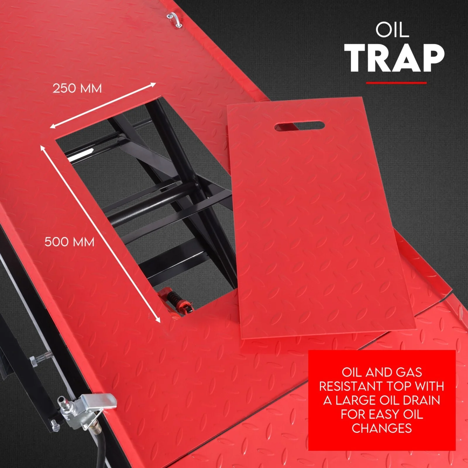 When it’s time to get your bike off the ground, the Fiernero 500kg Motorcycle Lift Table delivers the muscle you need. Built from heavy-duty powder-coated steel, this hydraulic lift handles everything from regular servicing to full rebuilds. The foot-pump pedal gives you smooth, hands-free control while the extra-long platform and ramp make loading simple. With 4 tie-down points, a 45° front wheel clamp, and textured surface, your bike stays rock-solid and secure. Whether you’re in the shed or the shop, this lift is made to boost safety, comfort, and productivity every time you wrench.