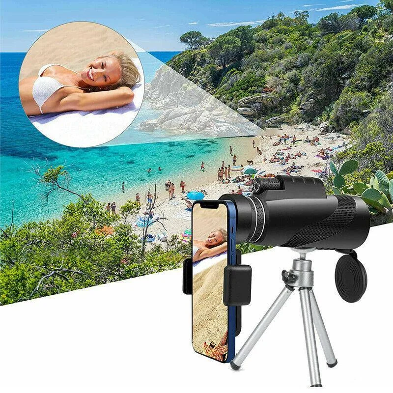 Explore distant landscapes and capture them in detail with this 50x60 HD monocular telescope. Designed for outdoor enthusiasts, this compact telescope delivers sharp, bright images thanks to its multi-coated optical lens and large eyepiece. Whether you're hiking, birdwatching, or attending a live event, the included tripod and universal smartphone adapter let you take steady, high-definition photos with ease. With a rugged, eco-friendly rubber shell and anti-slip grip, it performs well even in light rain or low light. Its portable size makes it easy to carry in any travel bag—perfect for nature lovers on the move.