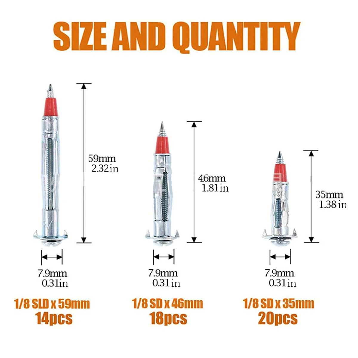 This set of wall anchors and expansion screws is designed for quick and secure mounting on drywall and hollow walls. Constructed from corrosion-resistant galvanized steel, each self-tapping bolt offers a firm grip and easy installation. With three different sizes included, these anchors are suitable for a range of fixtures and DIY tasks. Ideal for professionals and hobbyists alike.
