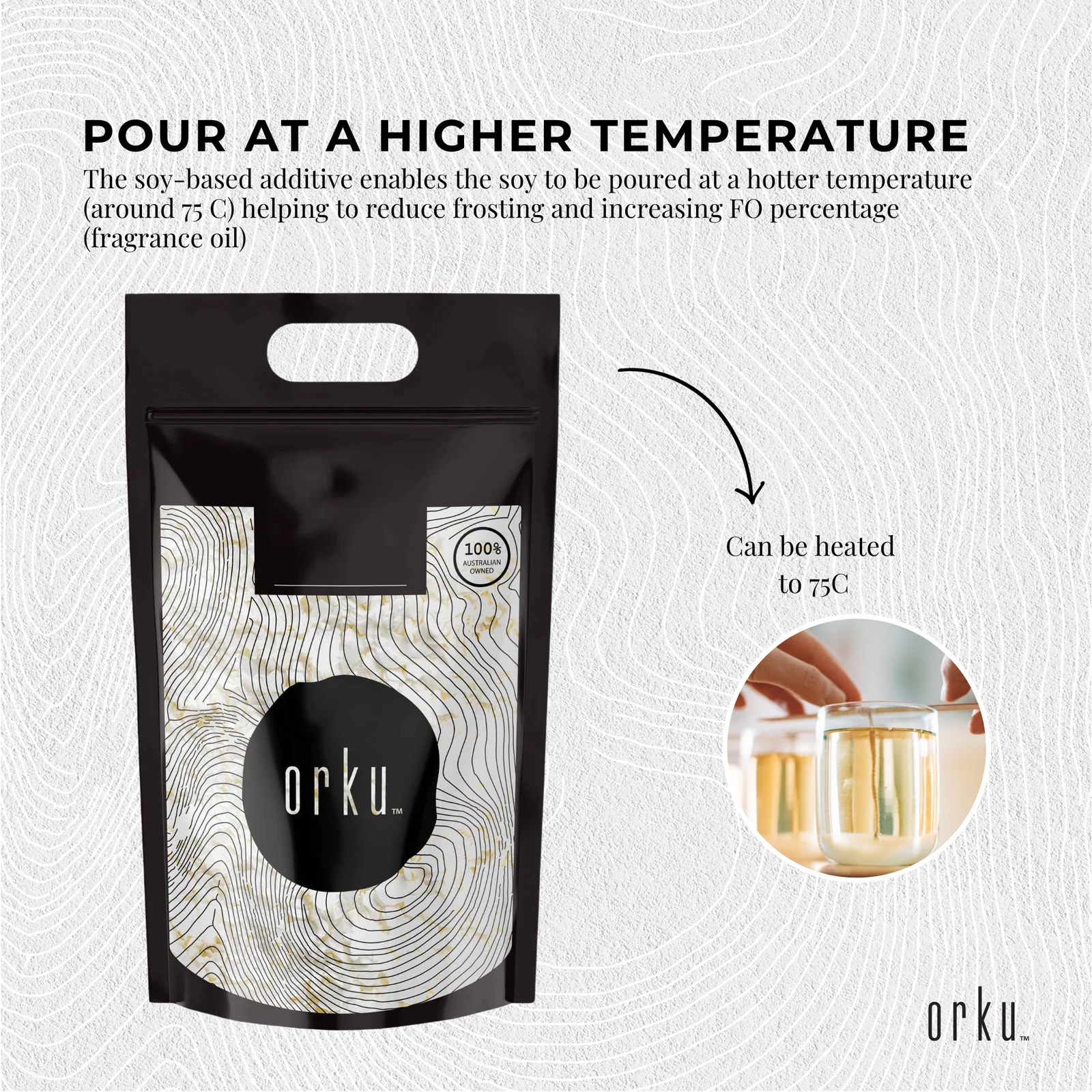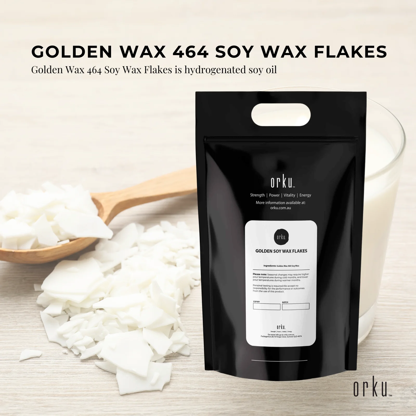Easy to use professional grade Golden Wax 464 Soy wax is a hydrogenated soy oil and contains a soy-based additive.ÊIt is 100% pure Soy wax and is a natural alternative vegetable wax and kosher. The soy-based additive enables the soy to be poured at a hotter temperature (around 75 C) helping to reduce frosting and increasing FO percentage (fragrance oil).