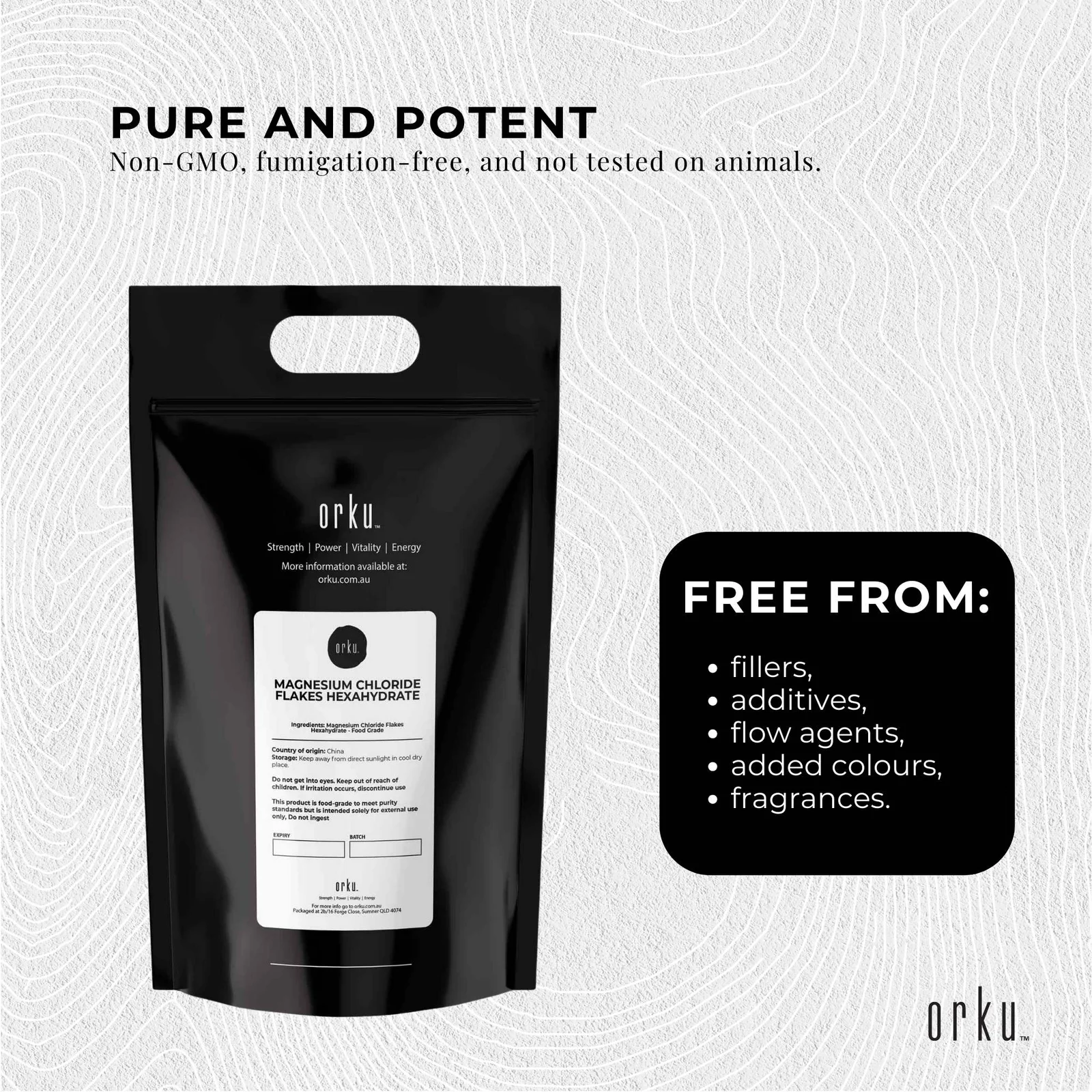 Magnesium Chloride Flakes are a pure salt collected from evaporated saltwater from the Dead Sea, recognised for its therapeutic qualities. Magnesium is an essential building block of many of our body's processes, keeping heart function, immune response, brain and nerve function, energy production and many other critical functions running smoothly.