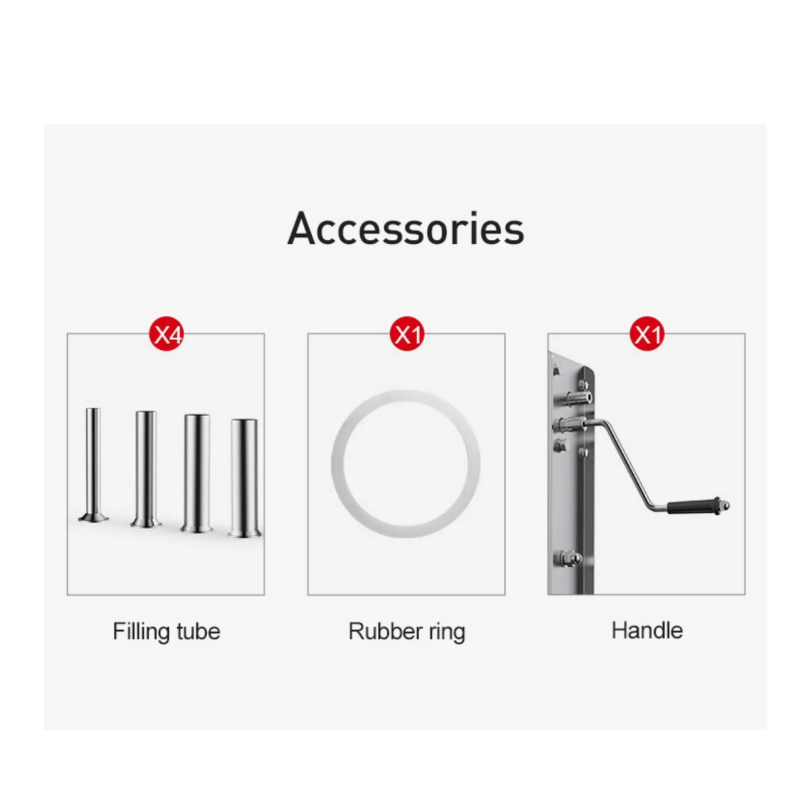 This sturdy 5L Manual Vertical Sausage Stuffer Machine is designed to be mounted securely onto any surface. The tank and various sized filling nozzles are made of a high grade, food safe 304 stainless steel for quality and durability.