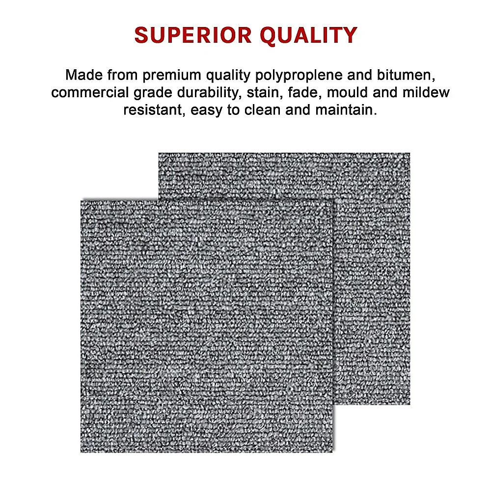 Cover your floor in comfort with these premium carpet tiles from Randy Travis Machinery. Whether you need economical flooring for your home or your office, these floor tiles can hold up under even the heaviest foot traffic. Not only that, but they're sun-damage resistant as well, so you can install them in even the sunniest rooms. They're easy to clean and simple to replace when you want a new design. They even protect your floors, so they're a great choice for kids' rooms, particularly if you have expensive hardwood or other high-end flooring in your home.