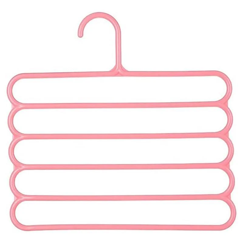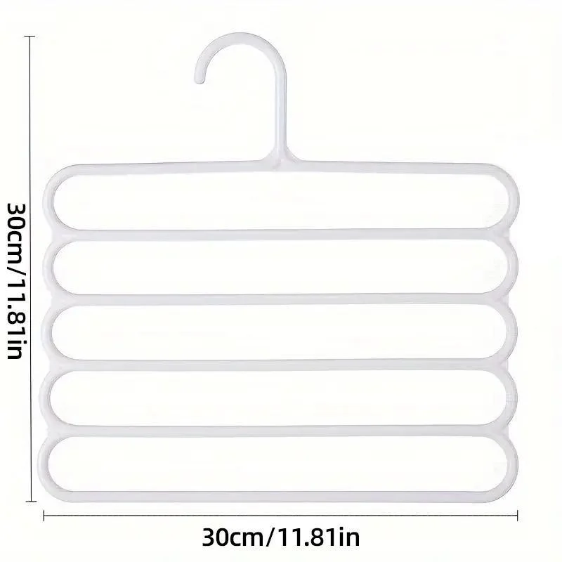 Organise your wardrobe efficiently with this set of five multifunctional five-layer trouser racks. Designed for storing pants, scarves, ties, and more, these space-saving hangers maximise vertical closet space, making it easier to keep your wardrobe tidy and accessible. Made from durable and flexible high-quality PP material, these hangers are resistant to wear and deformation, ensuring long-lasting performance. The non-slip design keeps your garments securely in place, making these hangers perfect for both small and large wardrobes.