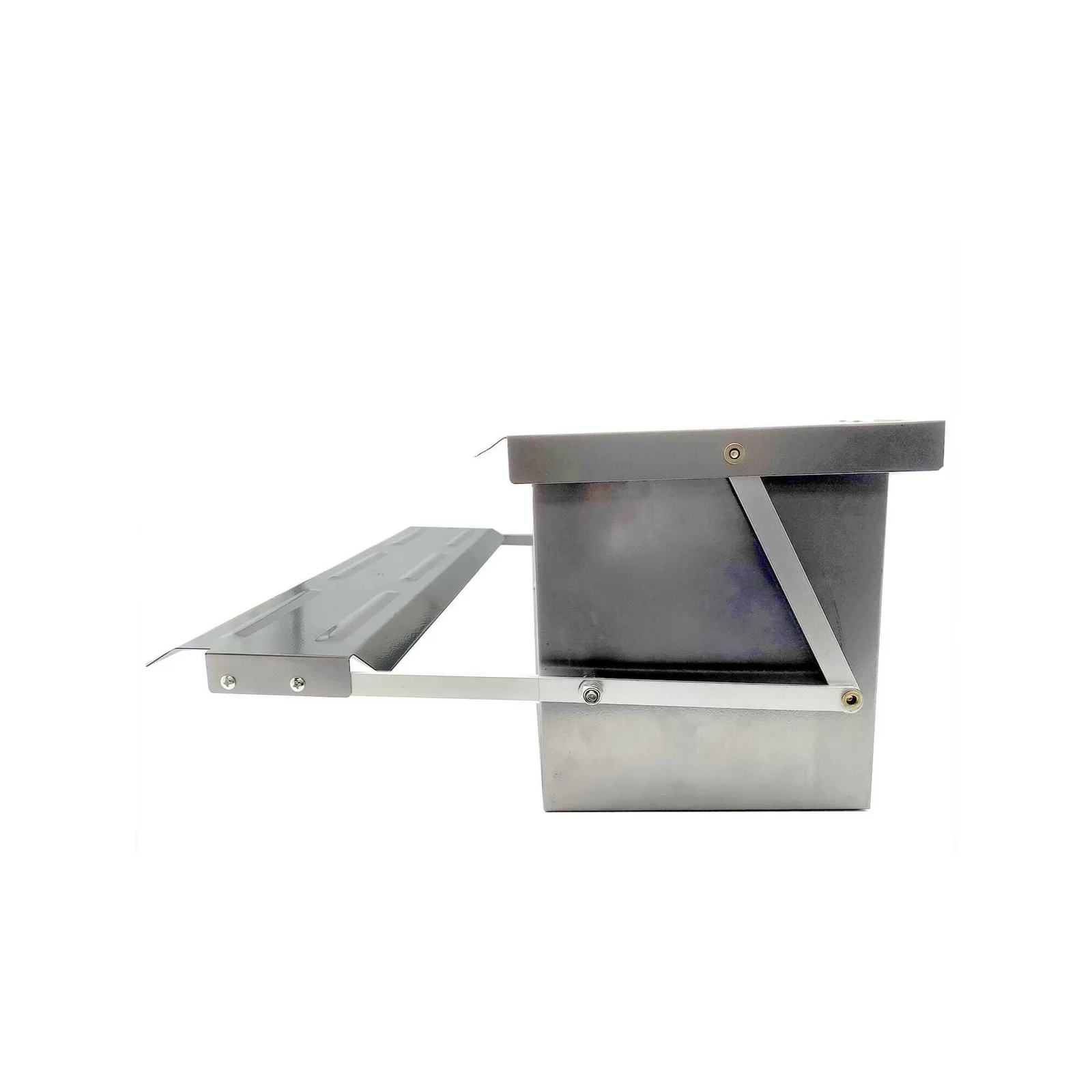 This Galvanised Steel Automatic Chicken Feeder provides a protected way of feeding your backyard chickens on demand. The lid can be opened when chickens (minimum 500g) step onto the platform. This clever design allows chickens to access their food when hungry, hence training them to self feed.