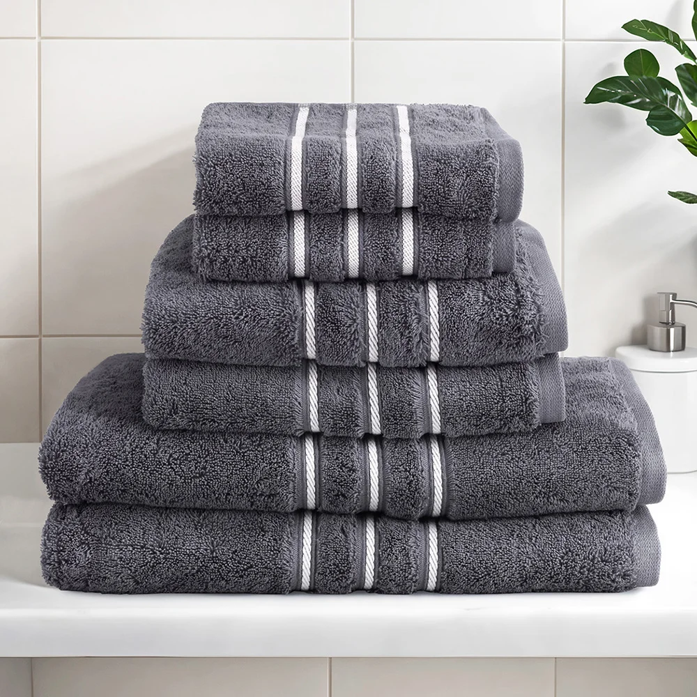 Indulge in spa-like luxury at home with this premium 6-piece bath towel set. Woven from 100% cotton with a plush 650gsm weight, these towels offer exceptional comfort and breathability. Wrap yourself in softness after a relaxing bath or shower, with the double-stitched edges ensuring long-lasting durability. The luxurious border design adds a touch of elegance to your bathroom décor, while the quick-drying and highly absorbent materials make these towels practical for everyday use. Toss them in the washing machine for effortless cleaning, and experience the difference quality cotton can make in your daily routine.