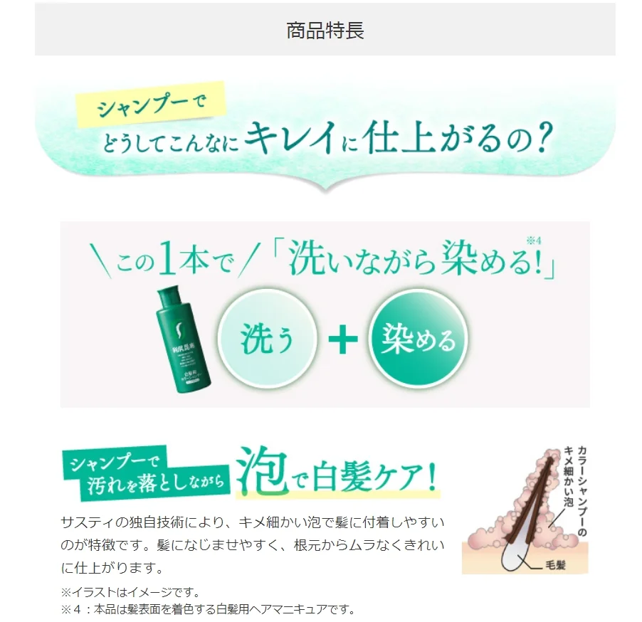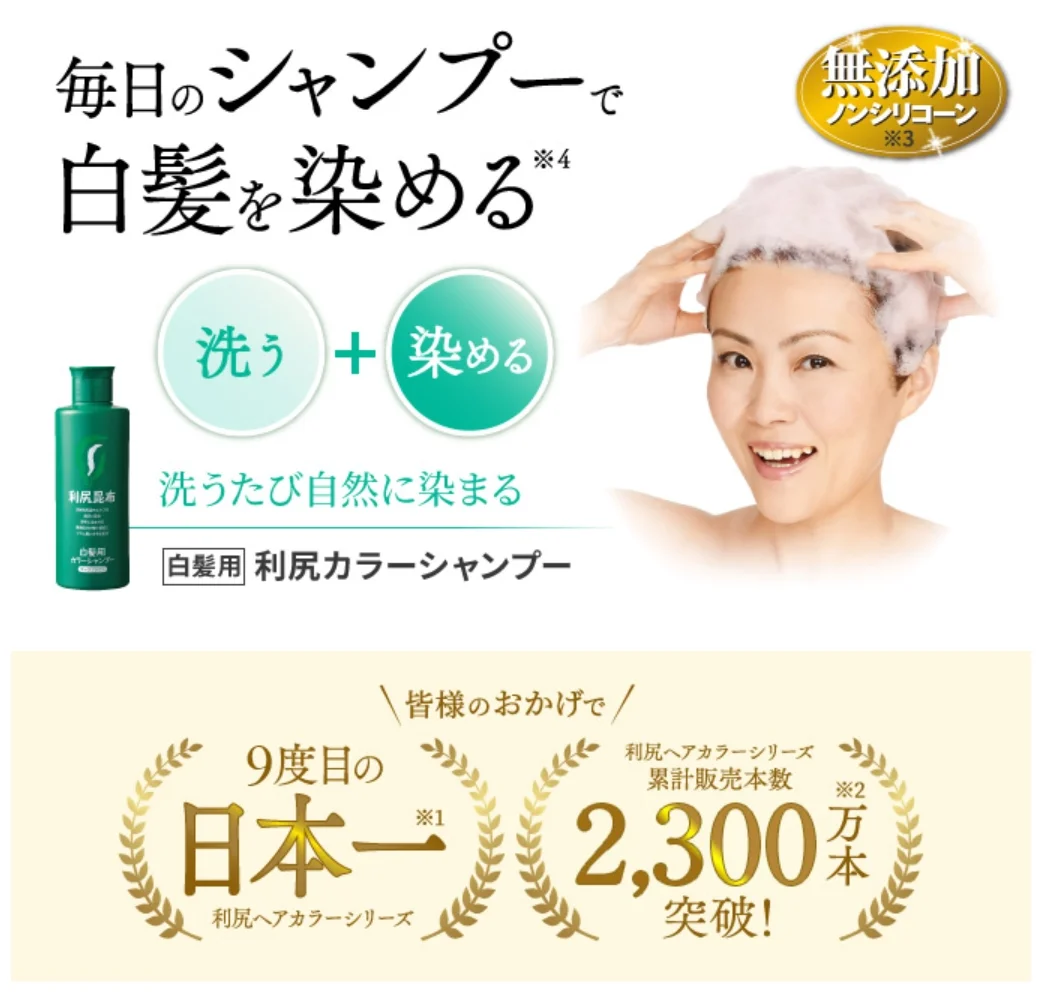 Simply replace your usual shampoo with "Rishiri Color Shampoo" and your gray hair will gradually become less noticeable, which is very easy.