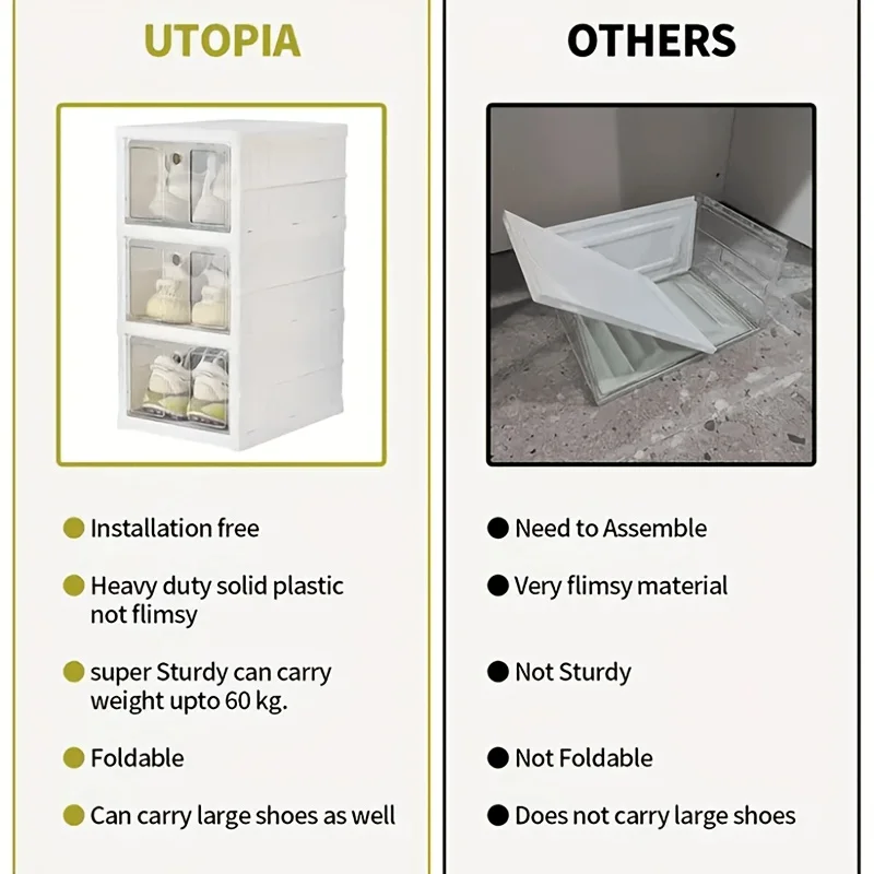 - **Transparent Visibility**: Front or side transparent window design makes finding shoes effortless