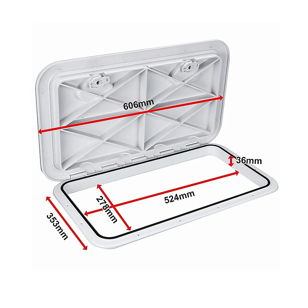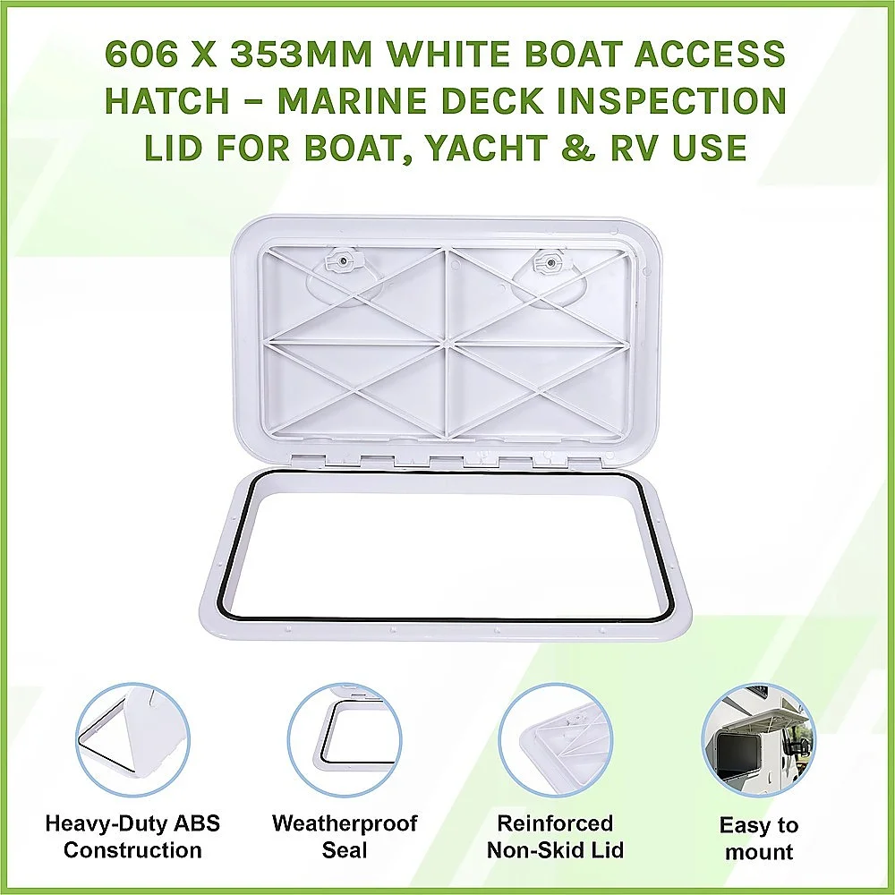 Upgrade your marine or RV storage with this White Marine Boat Deck Access Hatch*, engineered for strength, longevity, and seamless integration. Constructed from heavy-duty ABS plastic, this low-profile hatch is built to withstand harsh marine environments while providing a clean, flush-mounted finish. Suitable for both internal and external flat surfaces, the hatch features a reinforced, non-skid lid that opens 180 and completely conceals the mounting flangedelivering both function and a sleek look.
