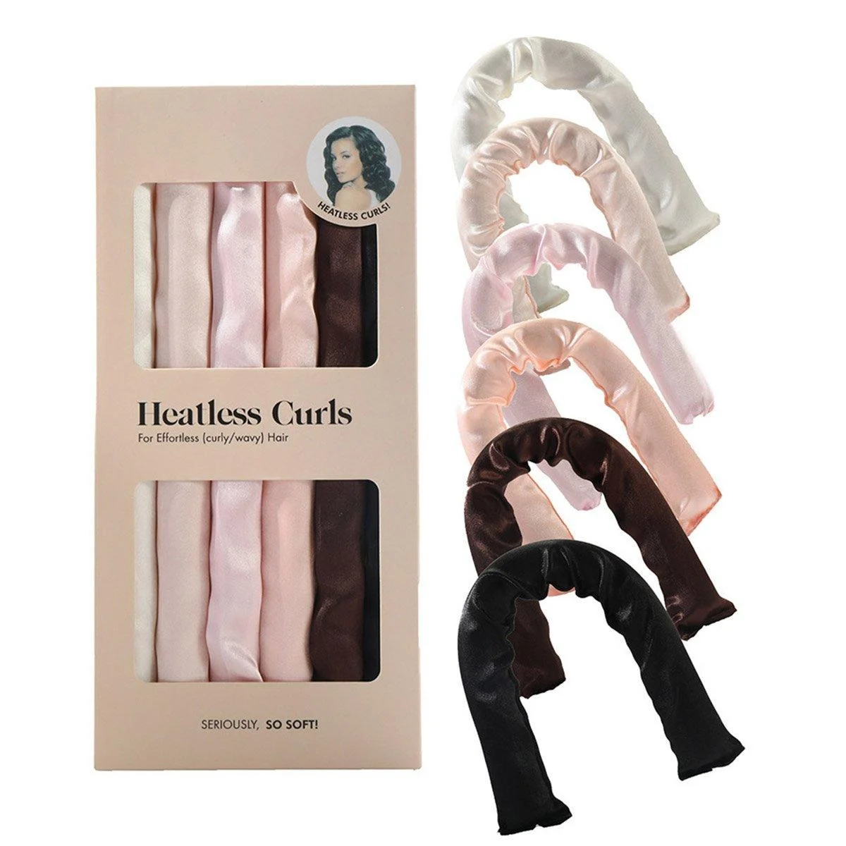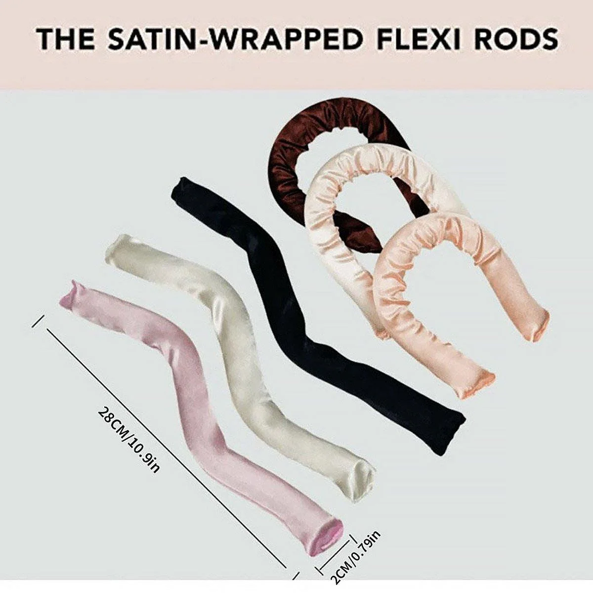 6 x Satin-Wrapped Heatless Curling Rods (Assorted Colours)