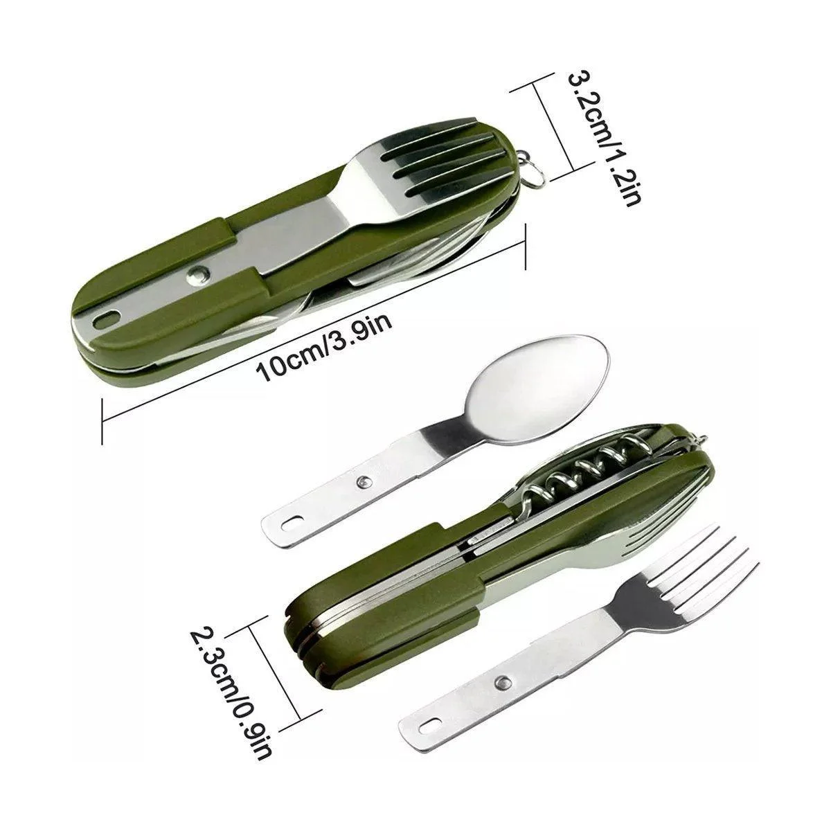 6-in-1 Functionality: Includes a knife, fork, spoon, bottle opener, red wine opener, and scraper, offering all the tools you need for dining in one compact unit.
