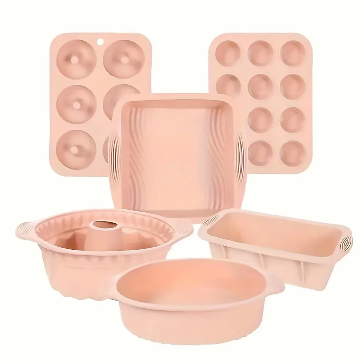 This 6-piece silicone baking mould set offers flexible nonstick performance for cakes, cupcakes, loaves, and more. Safe for oven, microwave, and freezer use, the food-grade silicone ensures even heating and effortless cleaning. Ideal for everyday baking with vivid colours to complement your kitchen.