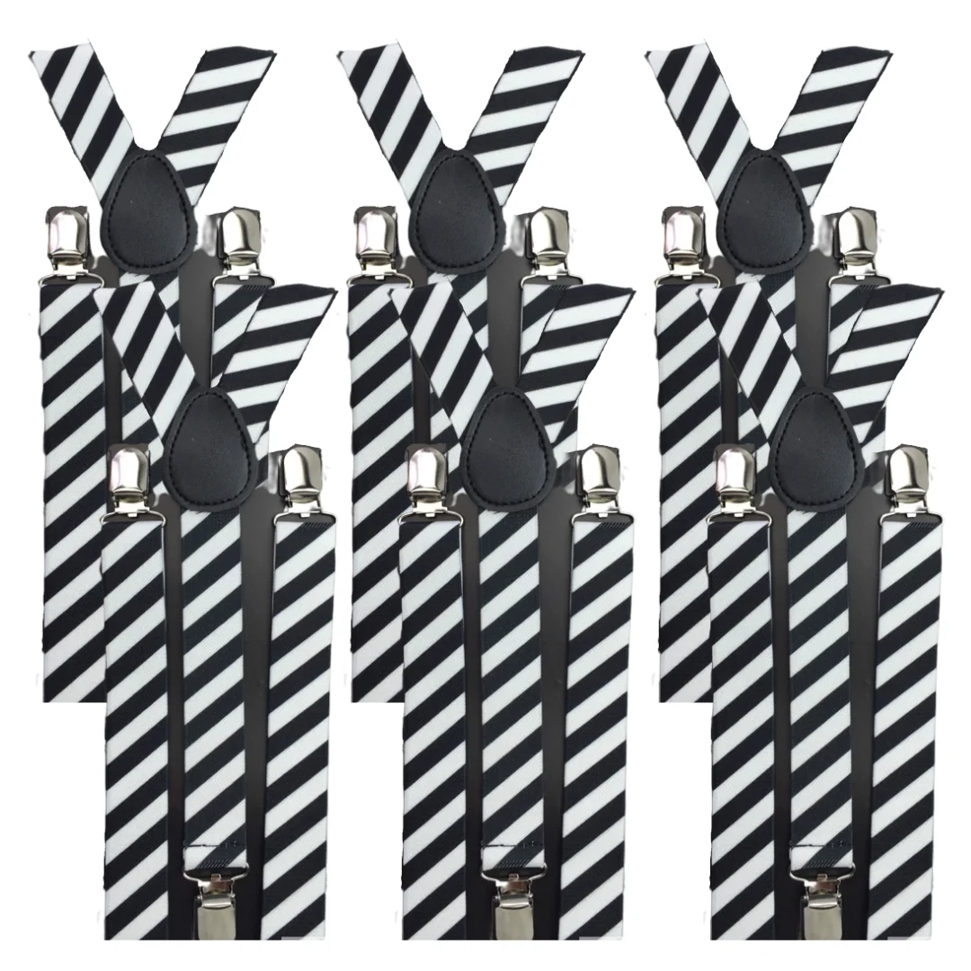 6x Mens Suspenders Braces Adjustable Strong Clip On Elastic Formal Wedding BULK - Black/White Diagonal Stripes
